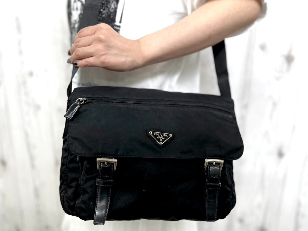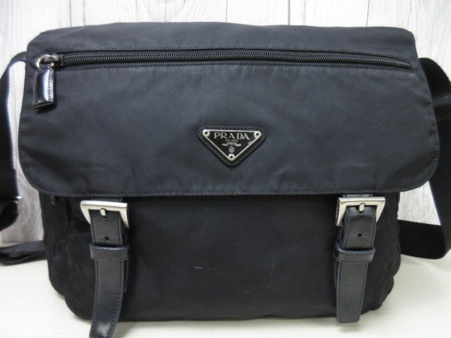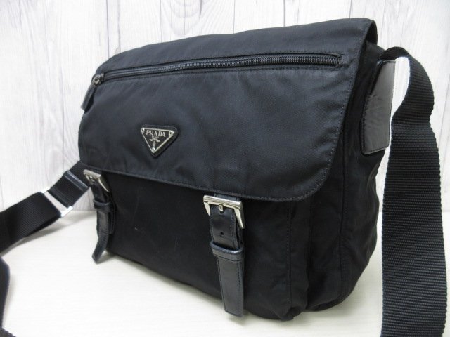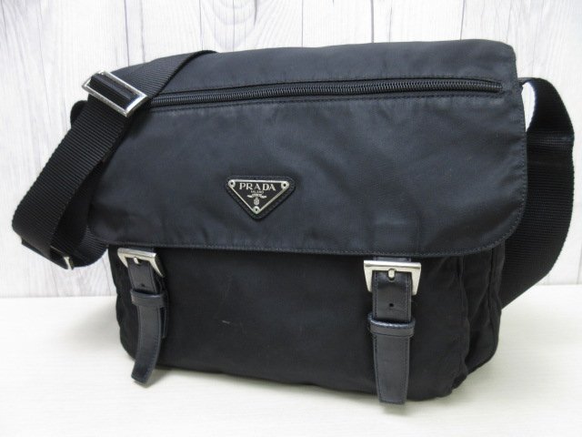 美品 PRADA プラダ テスート ショルダーバッグ バッグ ナイロン×レザー 黒 メンズ 90338 | ||