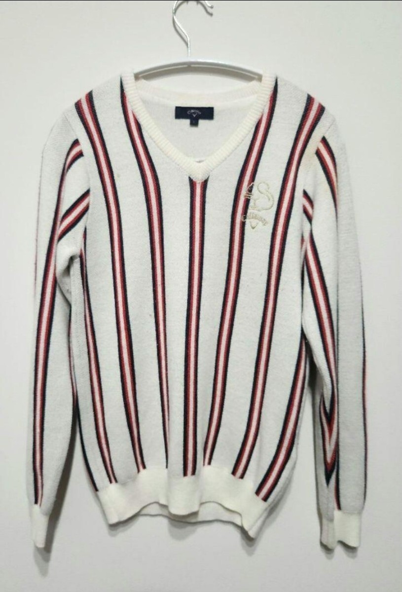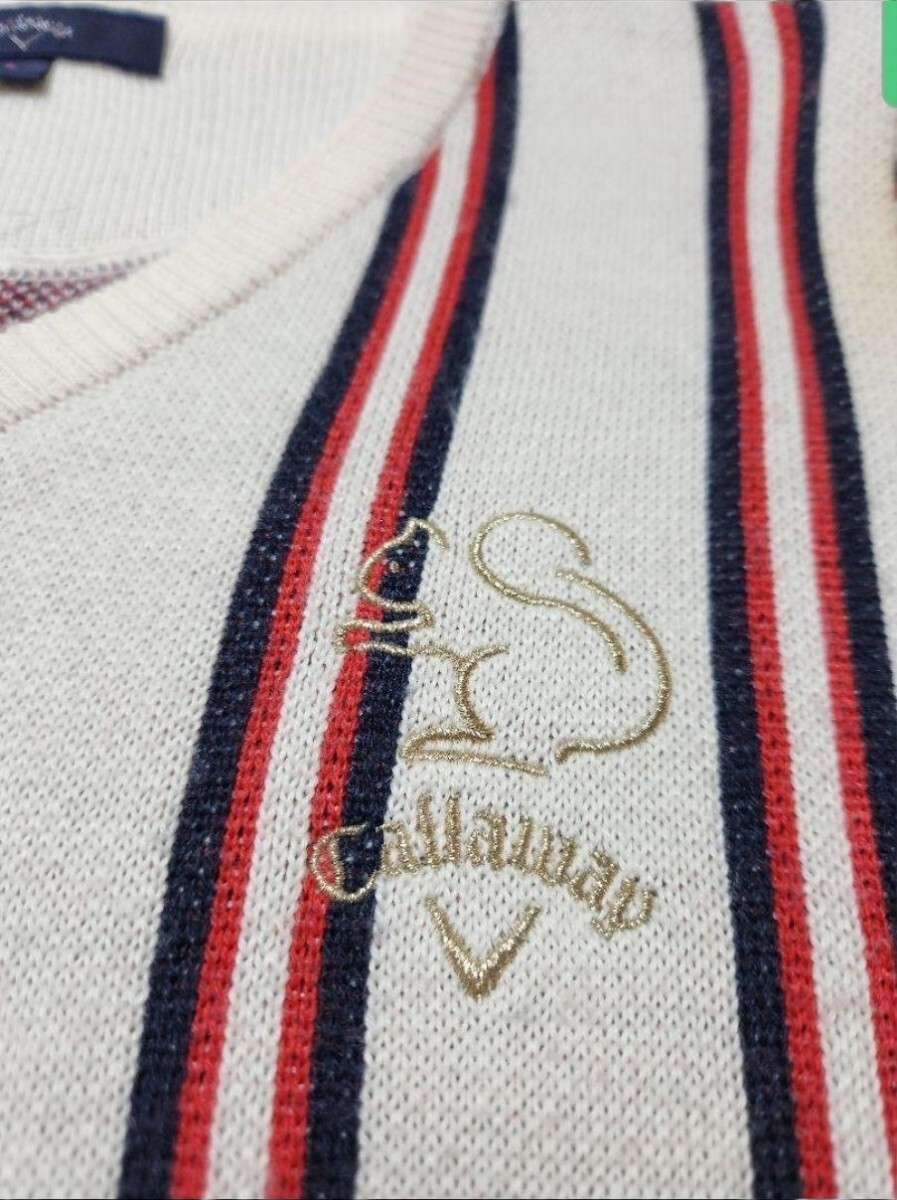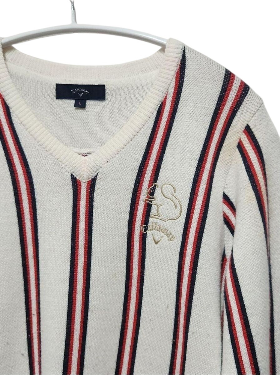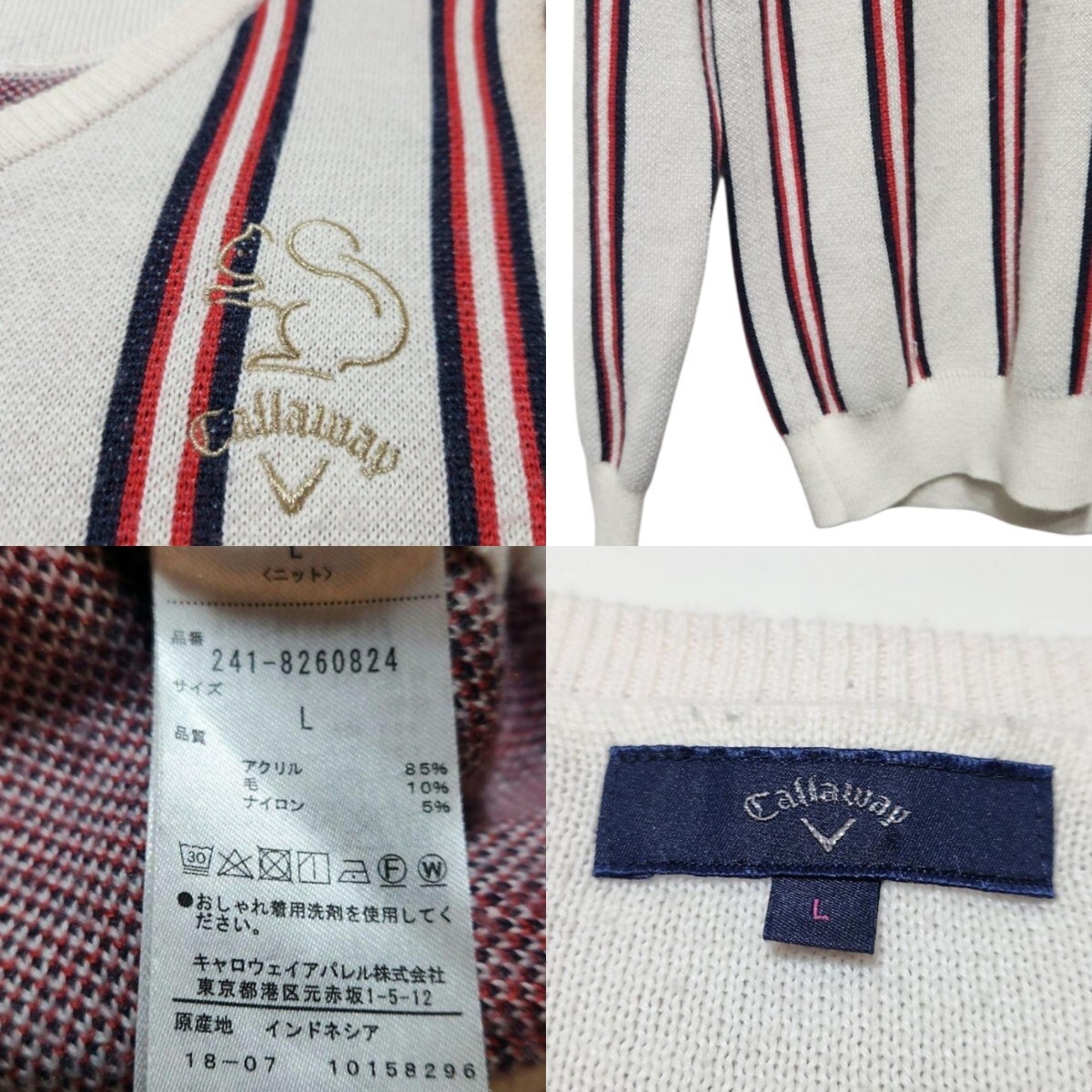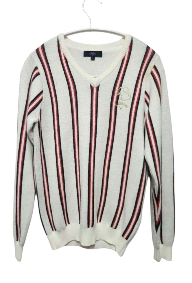 Callaway キャロウェイ レディース ゴルフウェア ニット セーター Vネック L ストライプ柄 ロゴ刺繍 古着 汚れあり