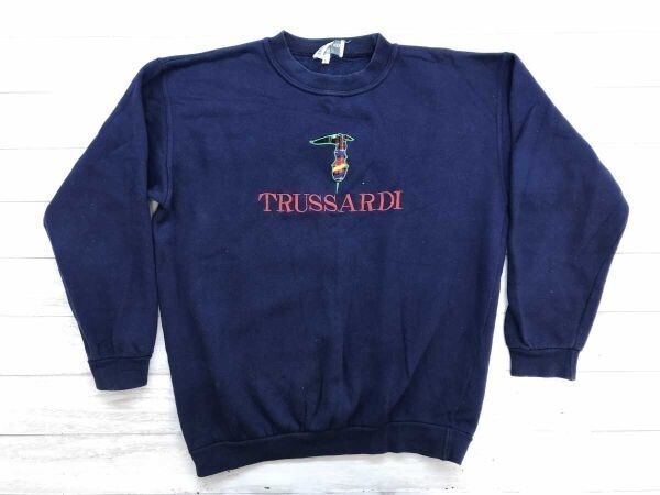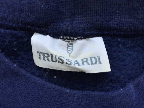 ITALY製 トラサルディ TRUSSARDI レトロ スポーツ トラッド ロゴモチーフ スウェット トレーナー メンズ 裏起毛 コットン混合 L 紺です。