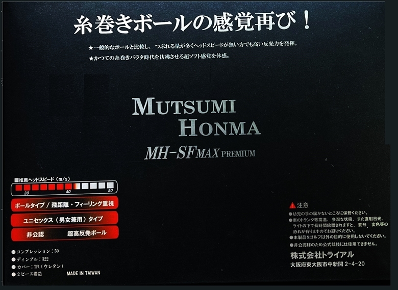 ☆オークション送料無料【非公認球1Z】ウレタンカバーによるソフトな打感【ムツミ ホンマ MUTSUMI HONMA MH-SF MAX PREMIUM】ゴルフボール