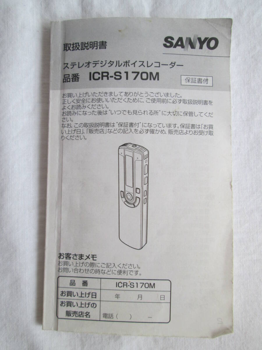 SANYO / ステレオデジタルボイスレコーダー / ICR-S170M / 中古品 / 動作確認済み になります