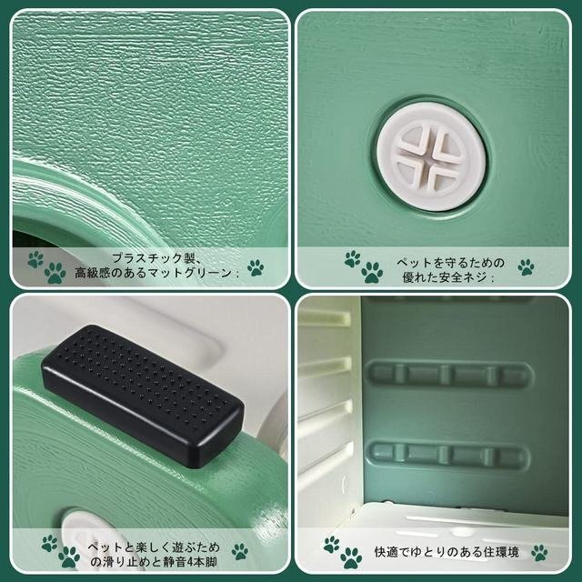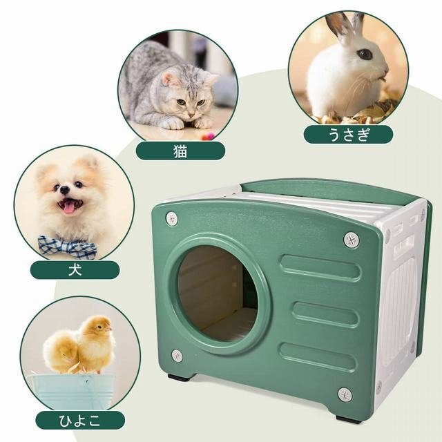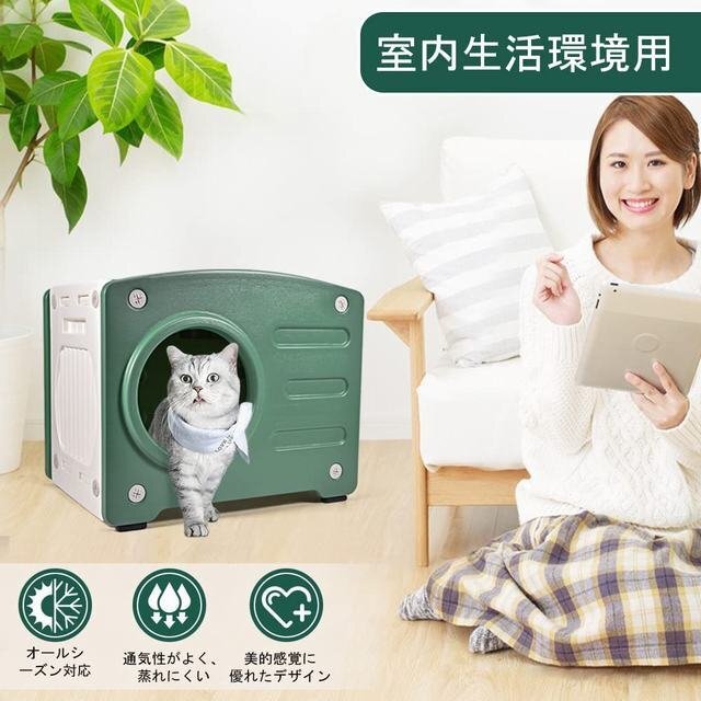 キャットハウス 猫小屋 組立式 猫 ベッド 安心安全 ペットハウス プラスチック製 小型犬小屋 防風 通気性 耐重 さびない 洗える 緑