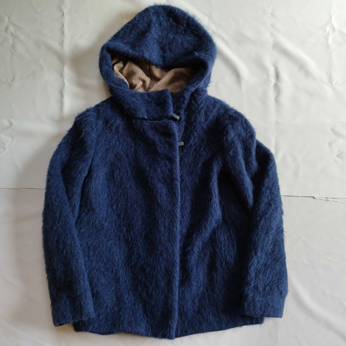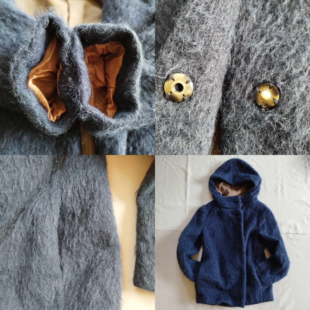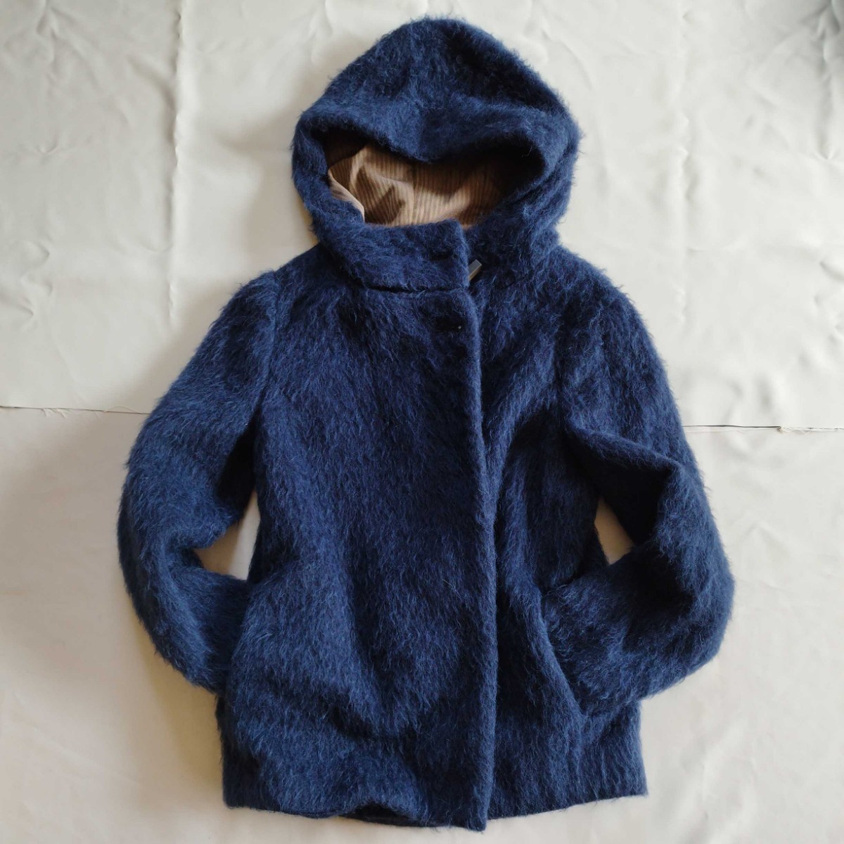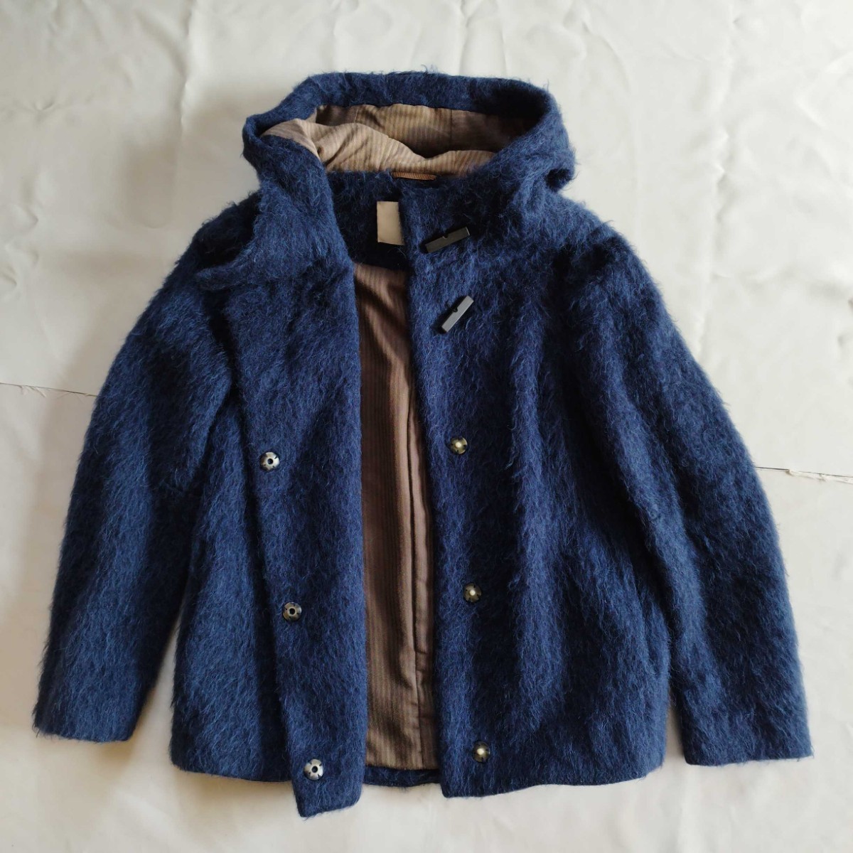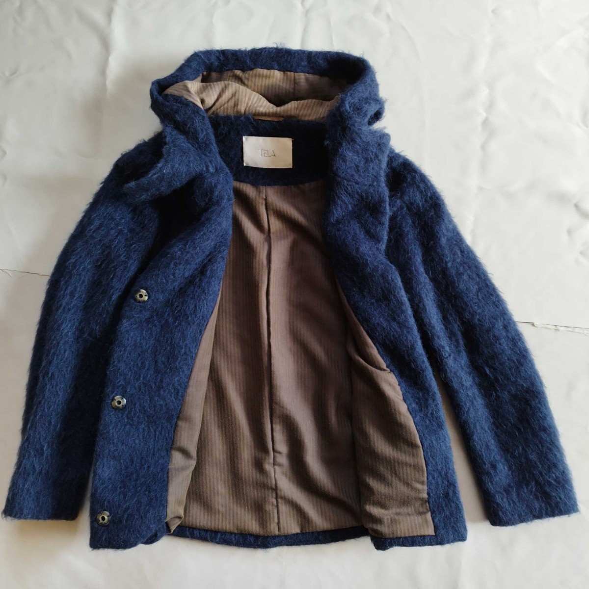 テラ ノーカラー シャギー パーカー ジャケット コート ウール素材 ネイビー |
