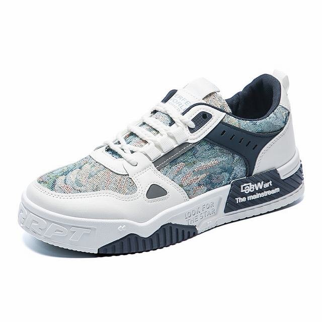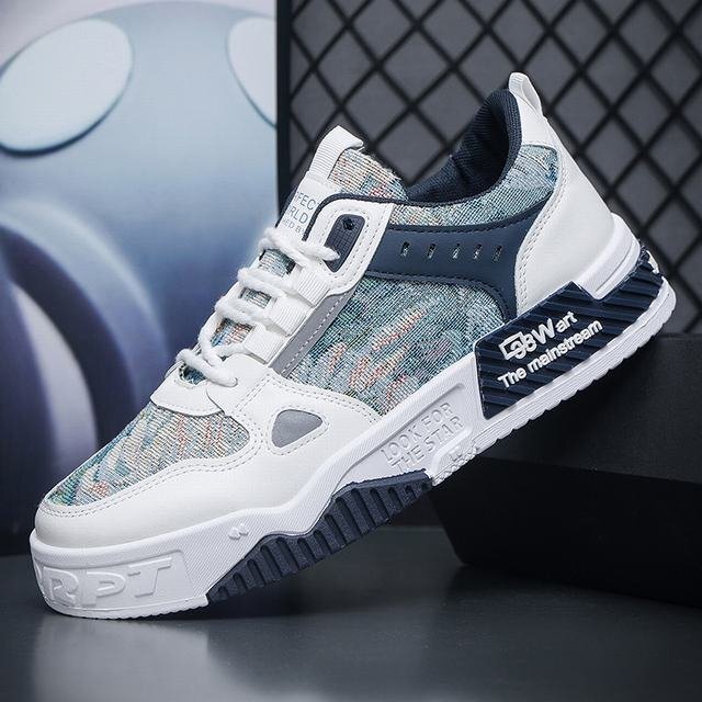 メンズ スニーカー フェイクレザー おしゃれ シューズ デッキシューズ ローカット カジュアルシューズ 靴 ブルー 27cm