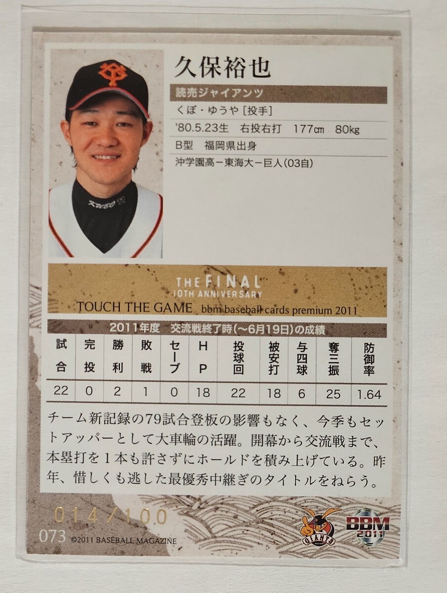 2011年BBM タッチザゲーム 青箔100枚パラレル 久保裕也 巨人 ジャイアンツ