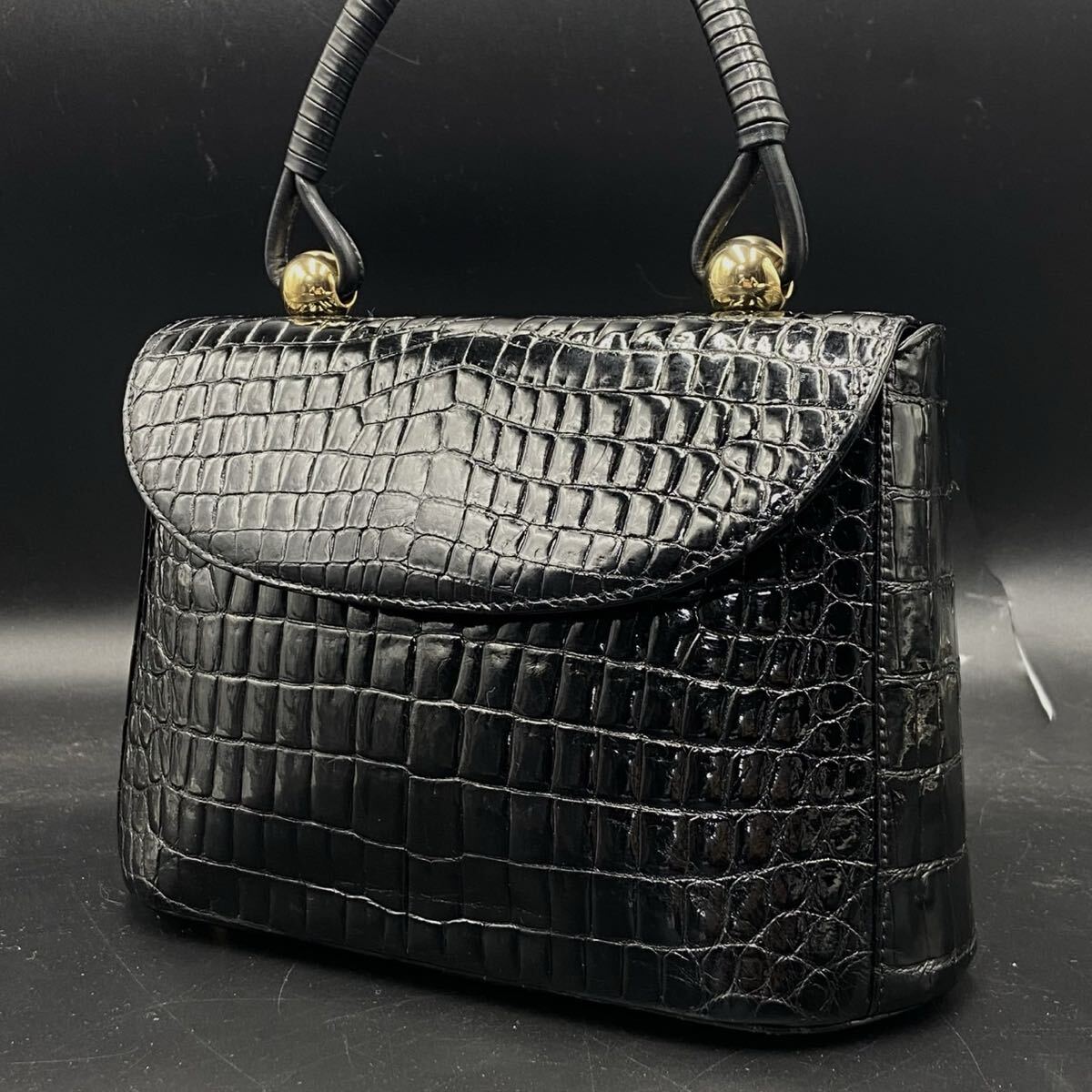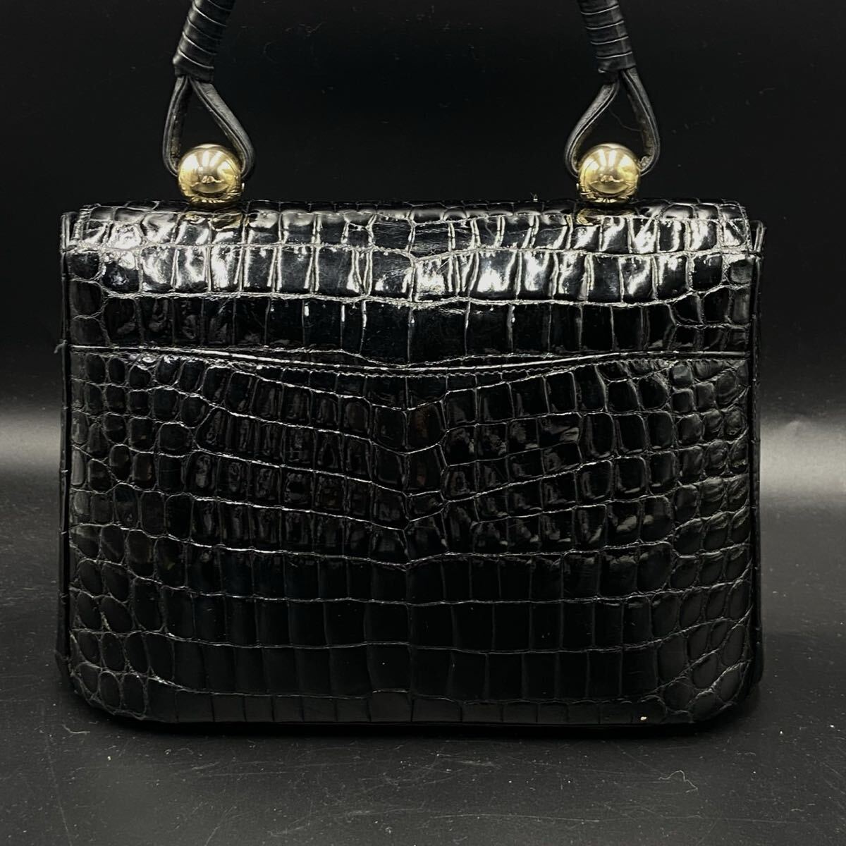 濱野 リアルクロコダイル ハンドバッグ ブラック