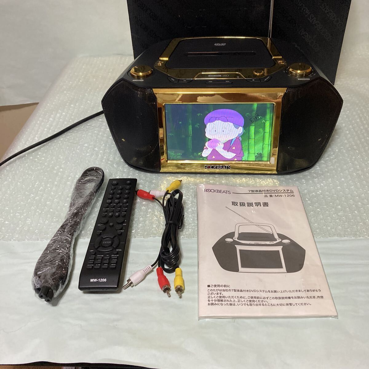 ※アズマMW-1206 ポータブルDVDコンポです。付属品は画像の通り、中古なので細かいスリキズあります。