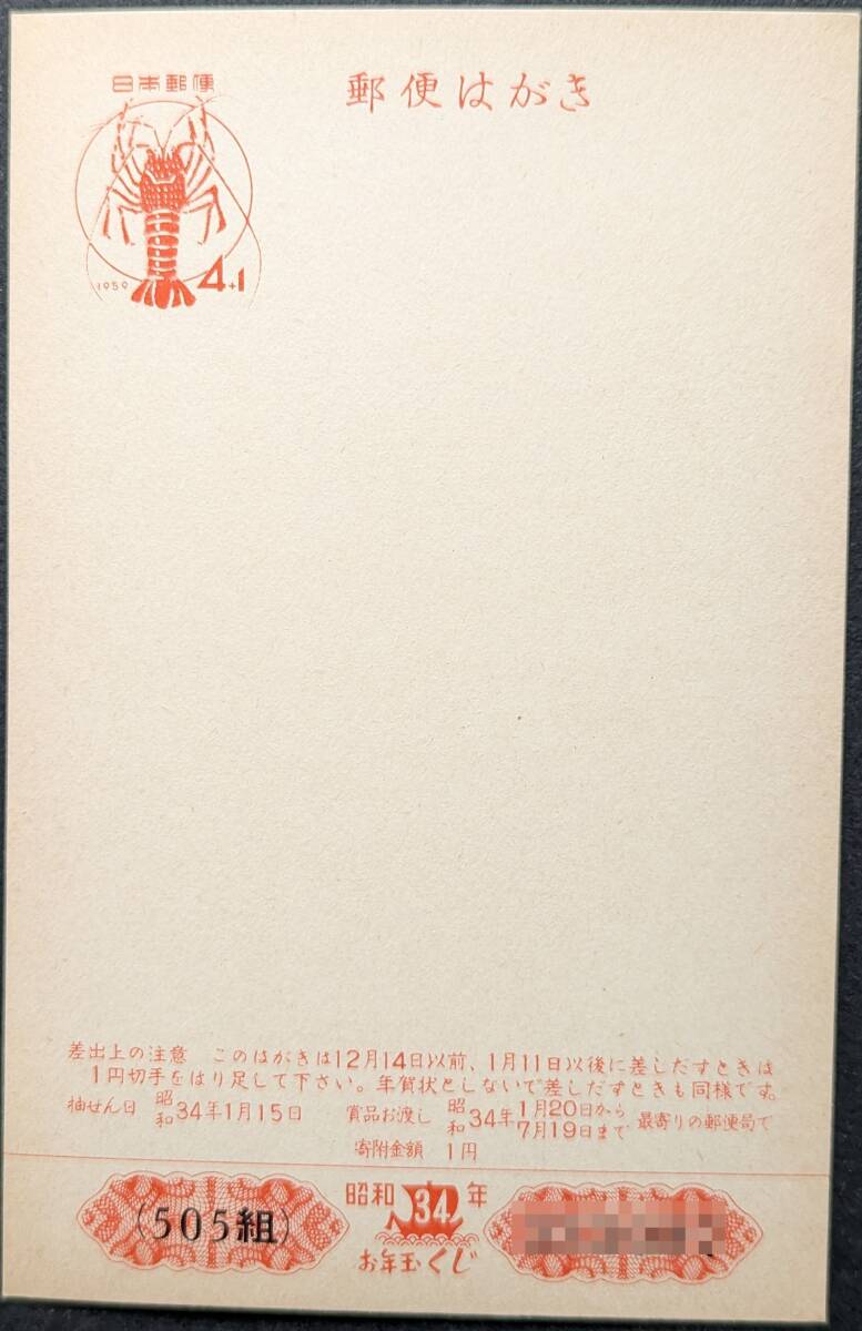 年賀はがき 昭和34年用 伊勢えび 未使用 1958年11月15日 発行