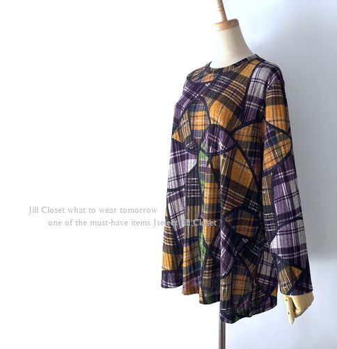 綺麗な彩りが映えるパッチワーク風プリント。薄手のエステルニットソー素材。ごわつかないのでカーディガンやアウターのインナーにも最適。着こなし次第でロングシーズン対応。デイリーにお出かけに大活用いただけます。気になるスタイルもカバー◎シンプルなボトムスに合わせるだけの簡単コーデ♪