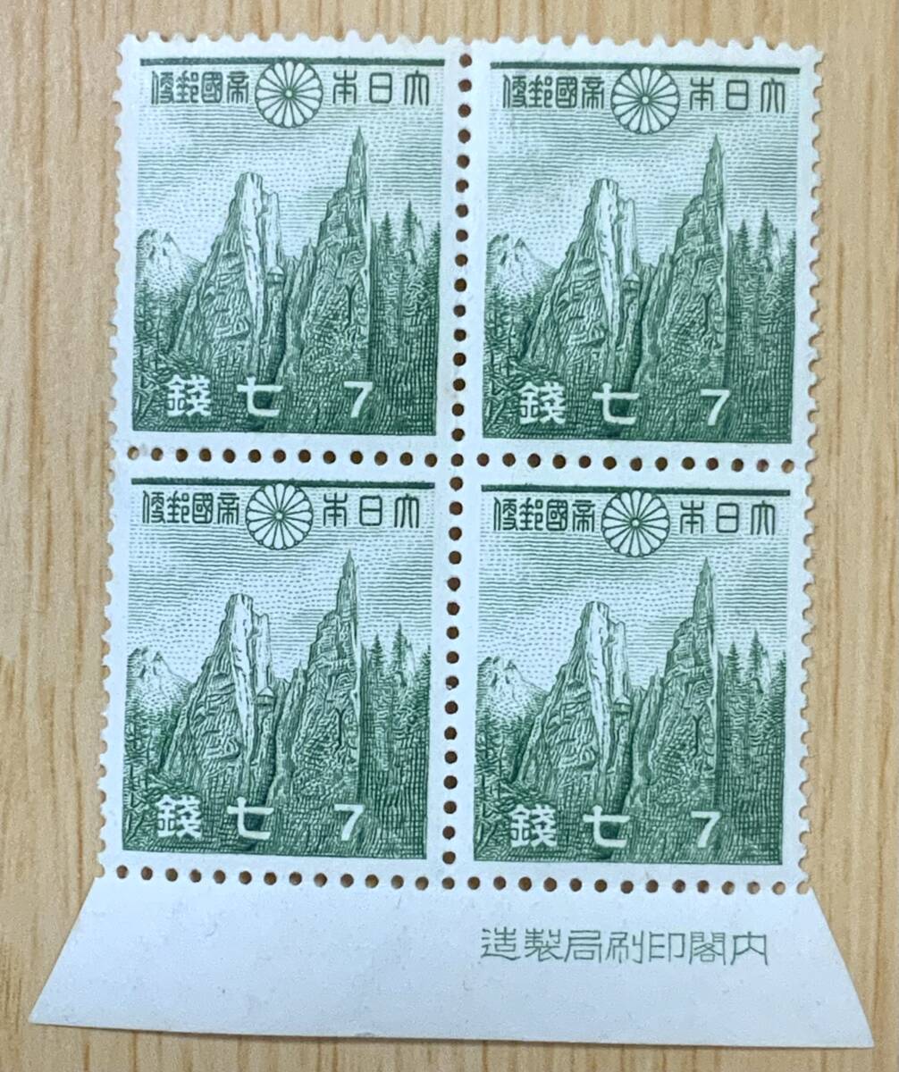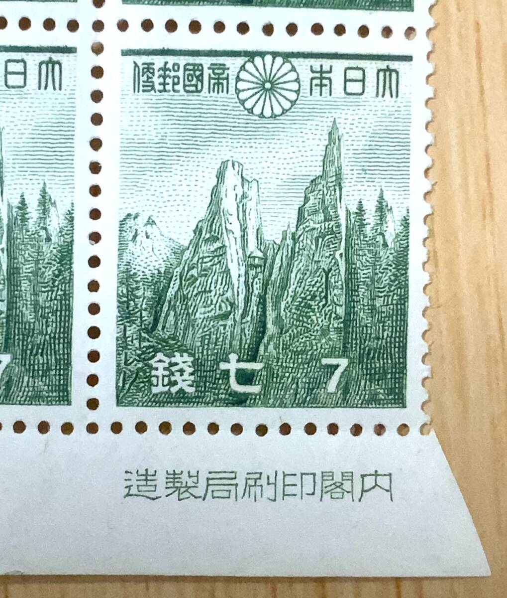 金剛山 7銭 第1次昭和 未使用 ブロック 銘版付