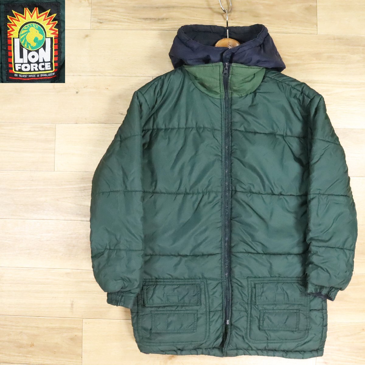 #2S/D7.15-4 LION FORCE リバーシブルジャケット フード付き 中綿ジャケット ポリコットン ブルゾン L グリーン×ネイビー 古着