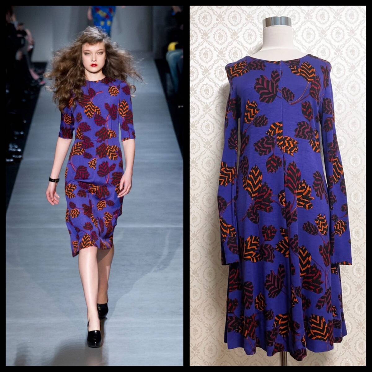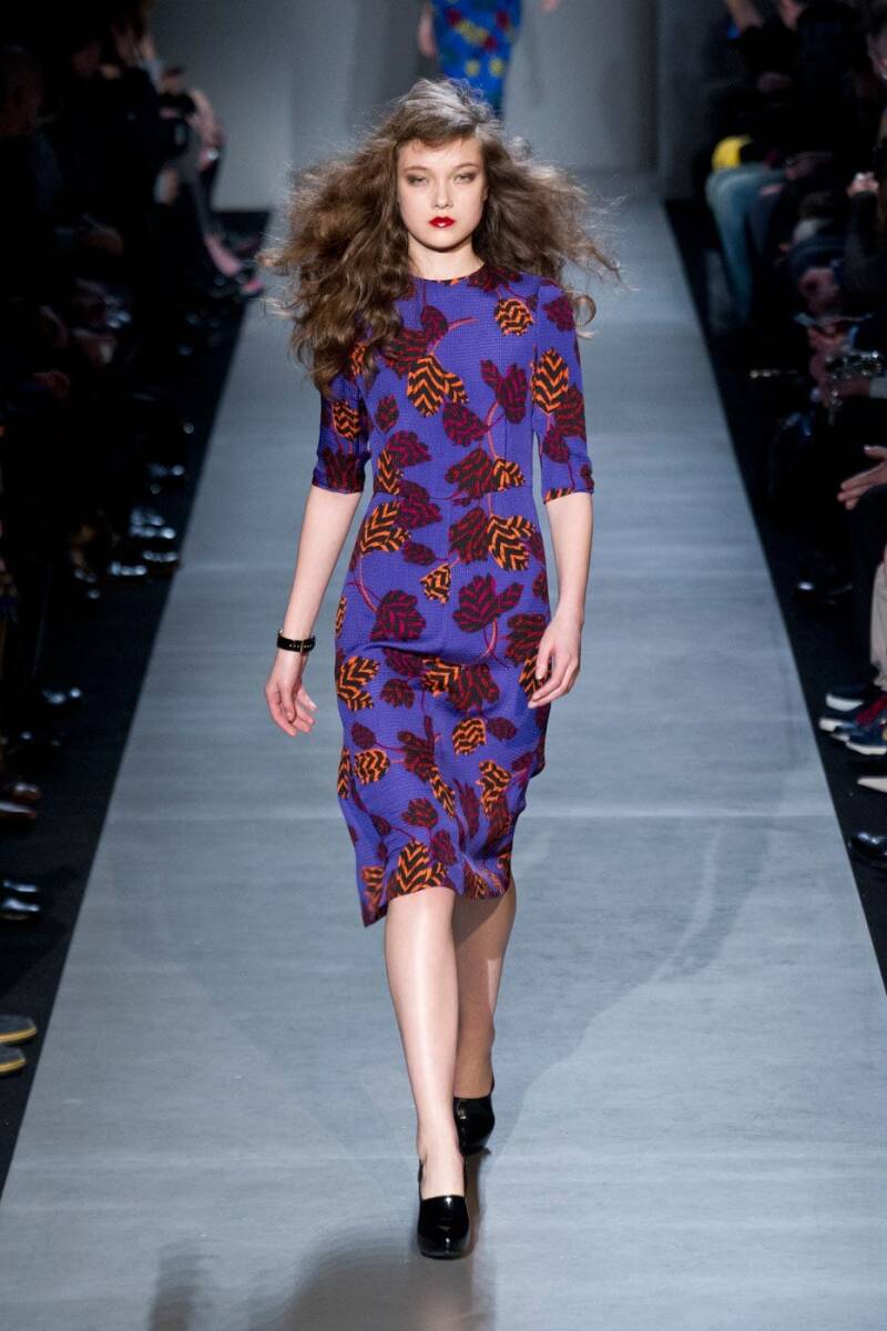 コレクションで同柄のワンピースをモデルがランウェイで着用しています