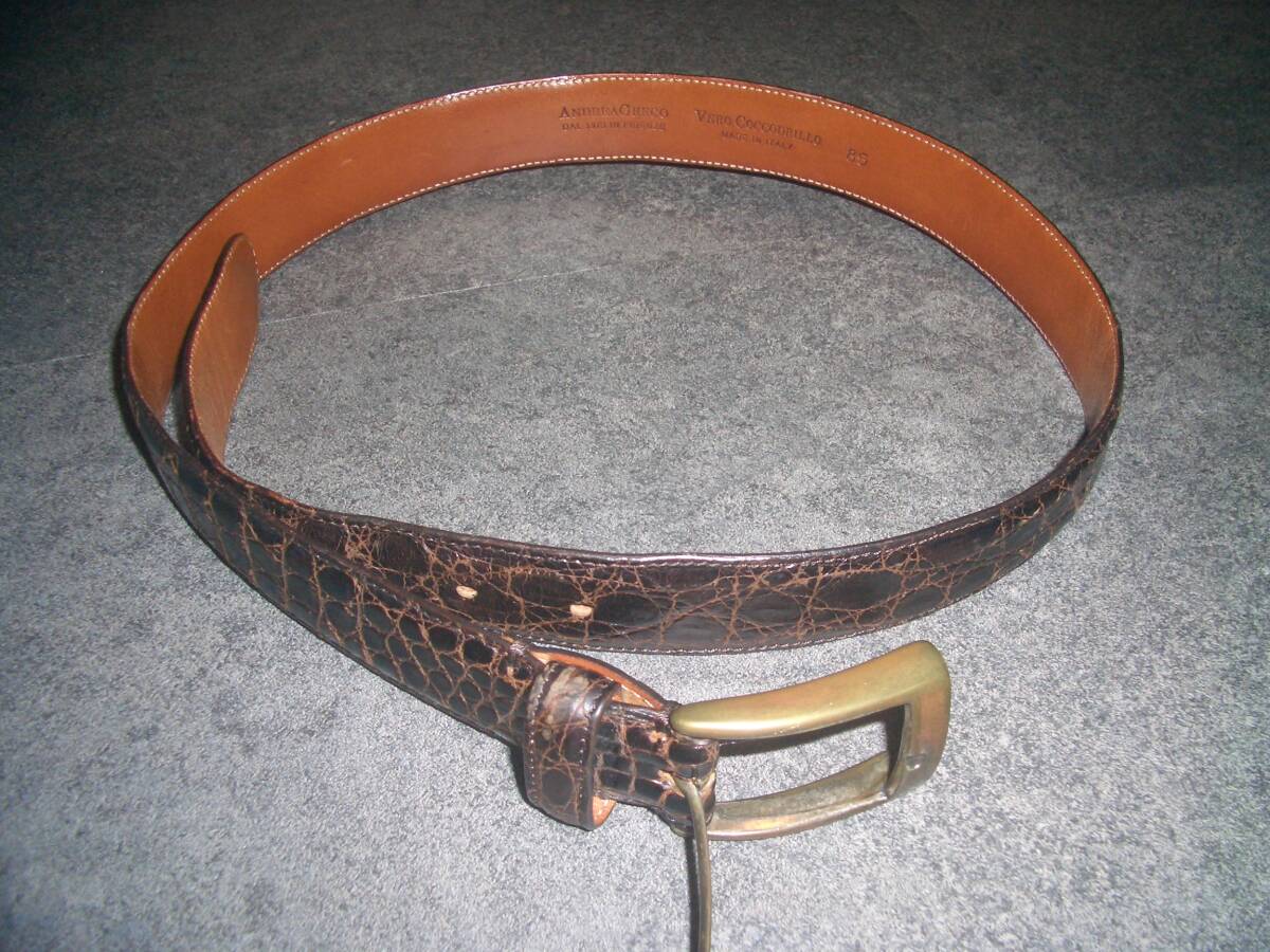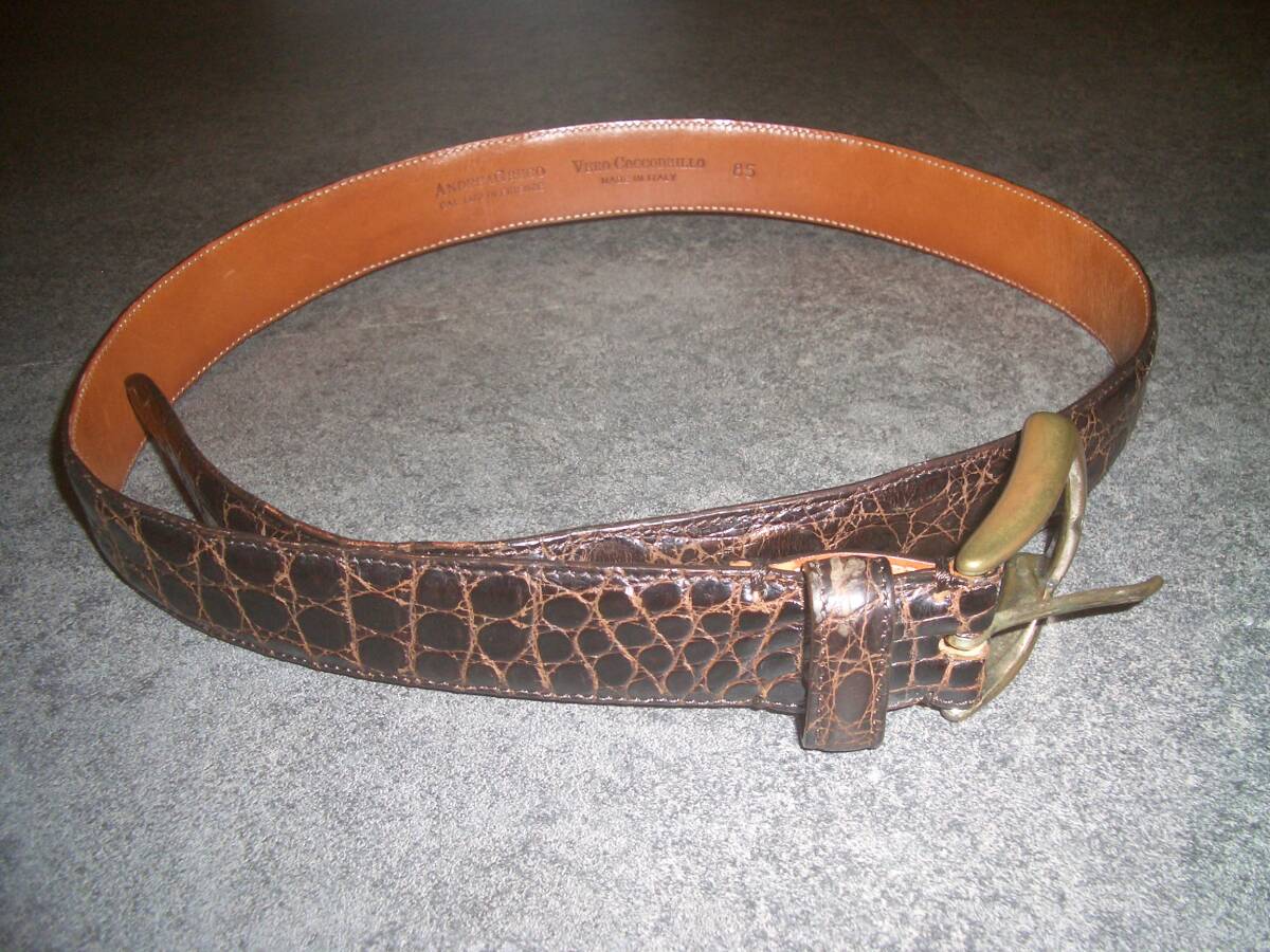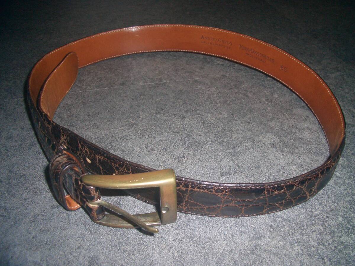 こちら、68,000円でトゥモローランドで購入した、大変希少なアンドレアグレコのクロコダイルのダークブラウンベルトになります。