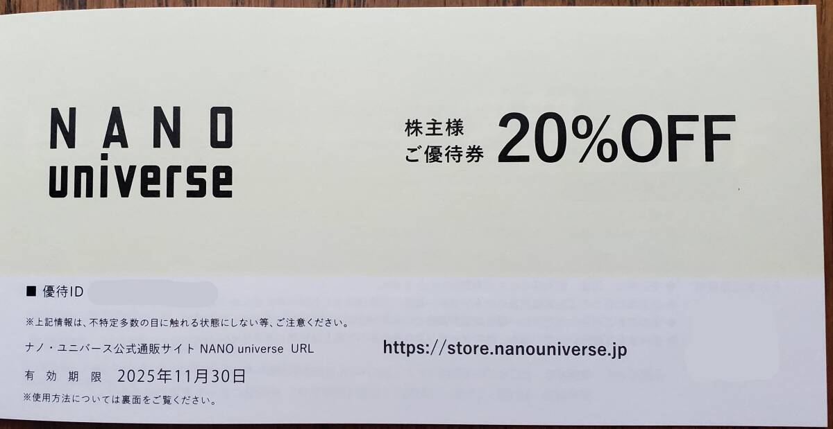 TSI 株主優待 NANO universe (ナノ・ユニバース) 20%割引券 1枚