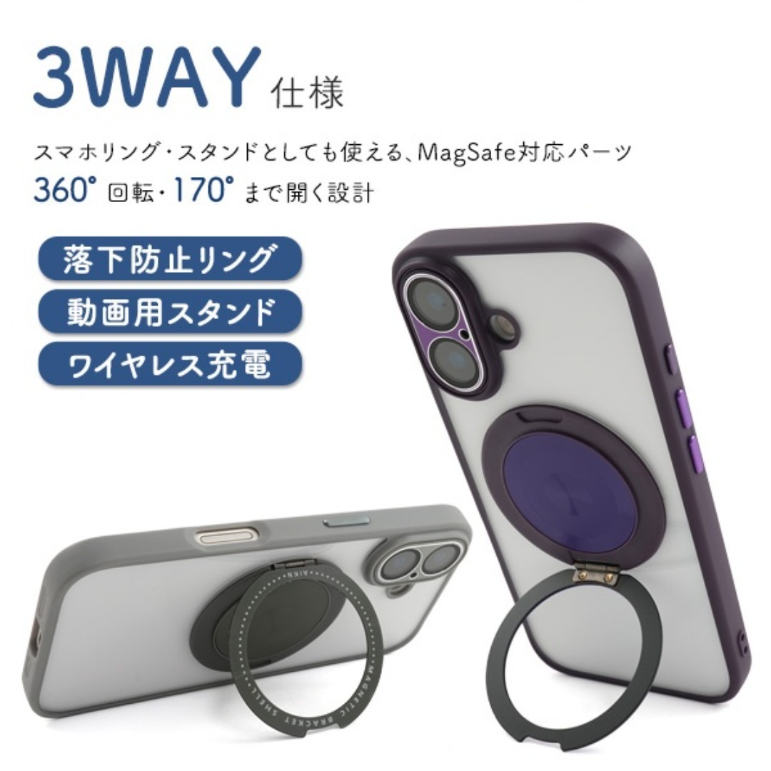 また、スマホリングやスタンドとしても使える3WAY仕様!