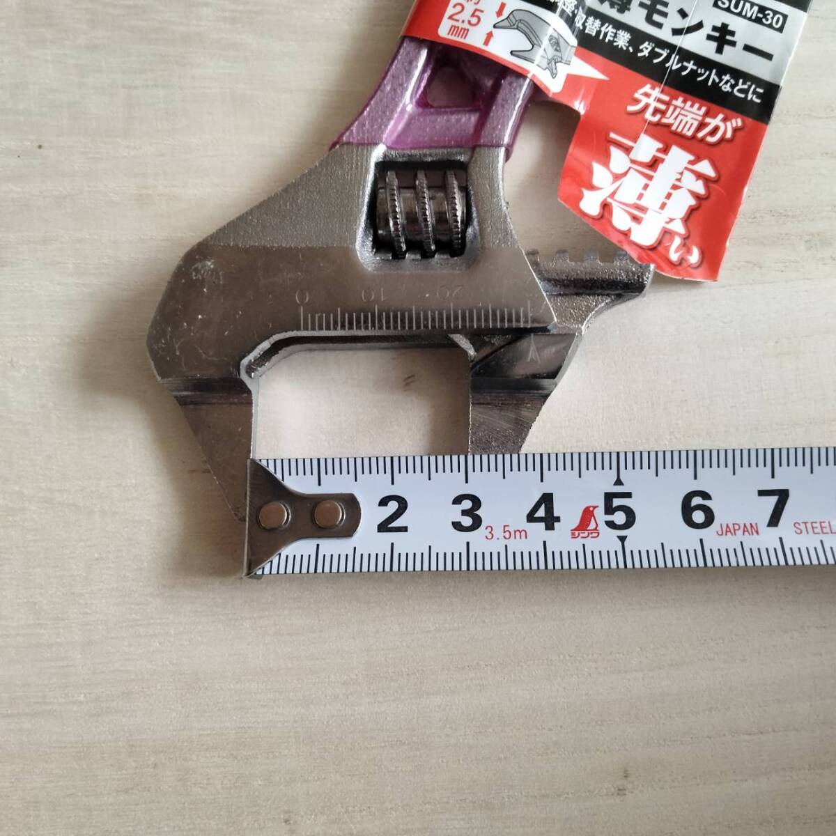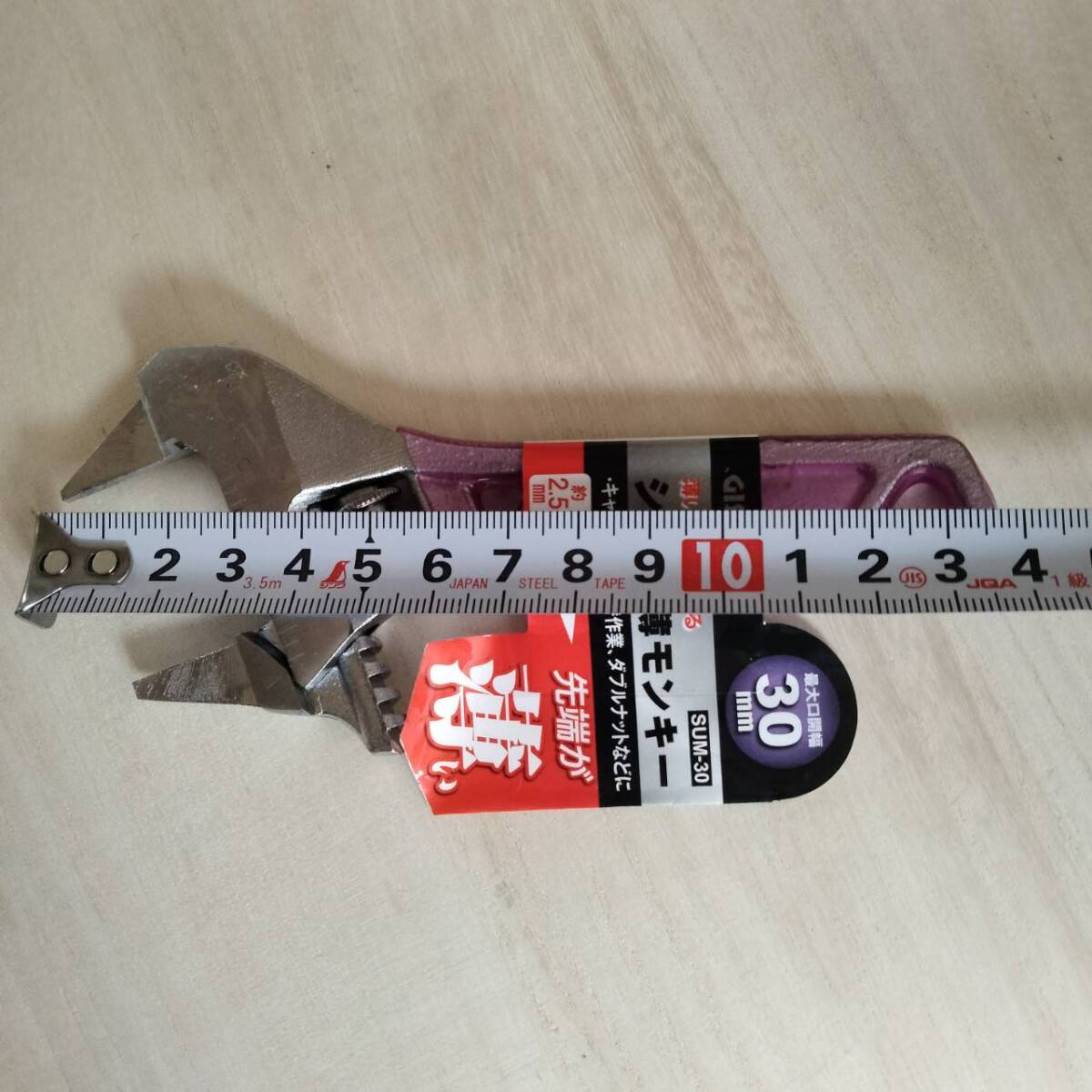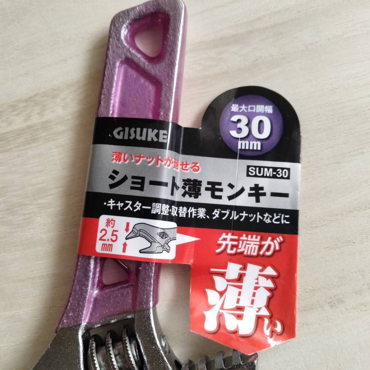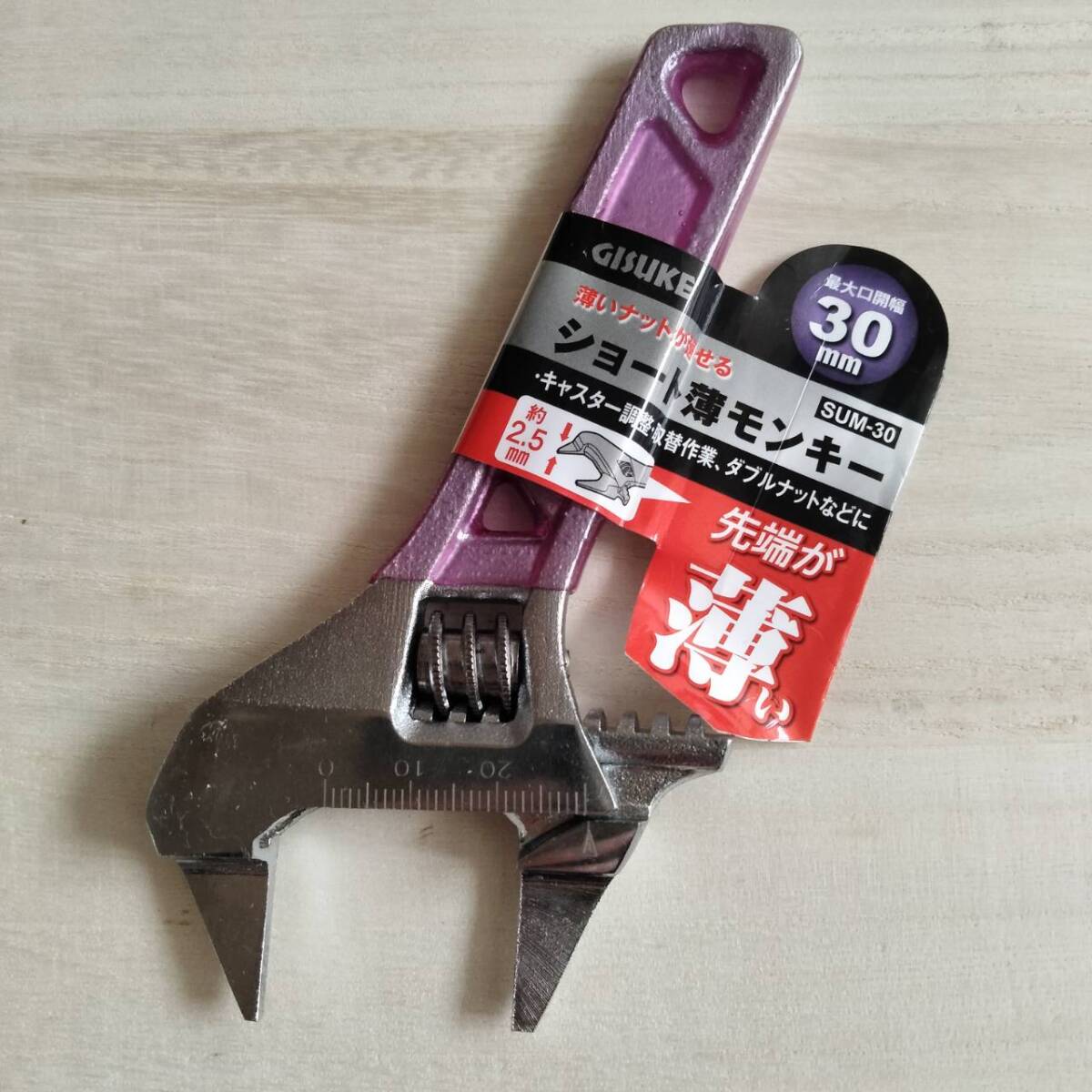 GISUKEのショートタイプ薄型モンキーレンチです。最大口開き30mm、