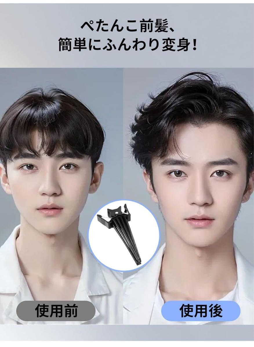 【メンズ・レディース、どちらも OK!】コンパクトサイズなので短めの前髪にも使いやすく、男性も女性も気軽にスタイリングできます。髪を傷めないよう、ピンチャーの先端は丸みを帯びた加工になっているため、初心者でも自然な立体感の髪型を簡単に作れます。黒・透明の 2 色からお好みの色を選べ、服装やシーンに合わせて使えます。