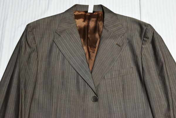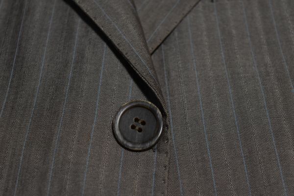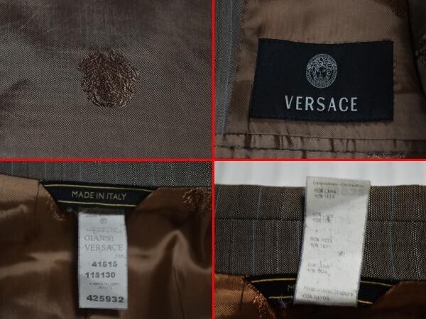 ##★VERSACE★ベルサーチ★イタリア製★メデューサ★ベージュにブルーストライプ★シルク絹ウール着心地良い高級華美なシングルスーツ56XXL
