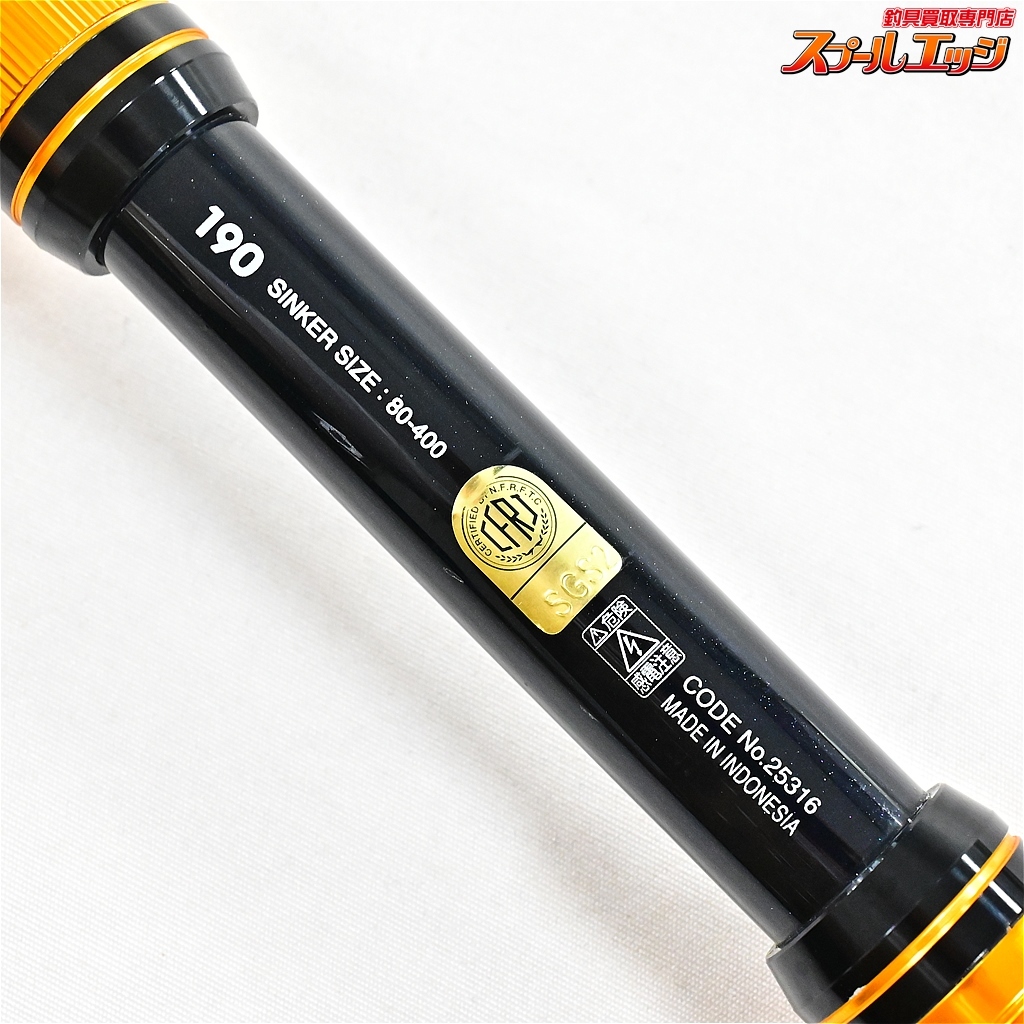 穂先詰め【無し】 ・自重(実測値):約562gとなります。 ・ファイティングボトムは付属しておりません。 ・1番〜9番ガイドスレッドコーティング(エポキシ)に横クラックがみられますが、通常利用するとできるものですので、使用に全く問題ありません。 小傷があり、若干の使用感を感じますが、比較的キレイな状態です! 動作はチェック済みで、安心してご使用いただけます。 たいへんお買い得です。 こちらは在庫が1点限りとなりますので、お探しの方はお急ぎください!! 【商品説明】 ・スペックにつきましては、写真のスペック表記をご覧くださいませ。 | ||||||