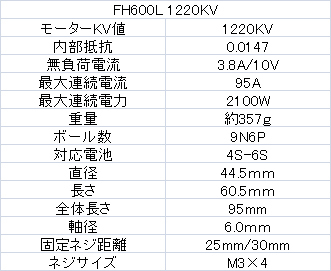 GARTT 550/600サイズ RCヘリ用 FH600L 1220KV ブラシレスモーター