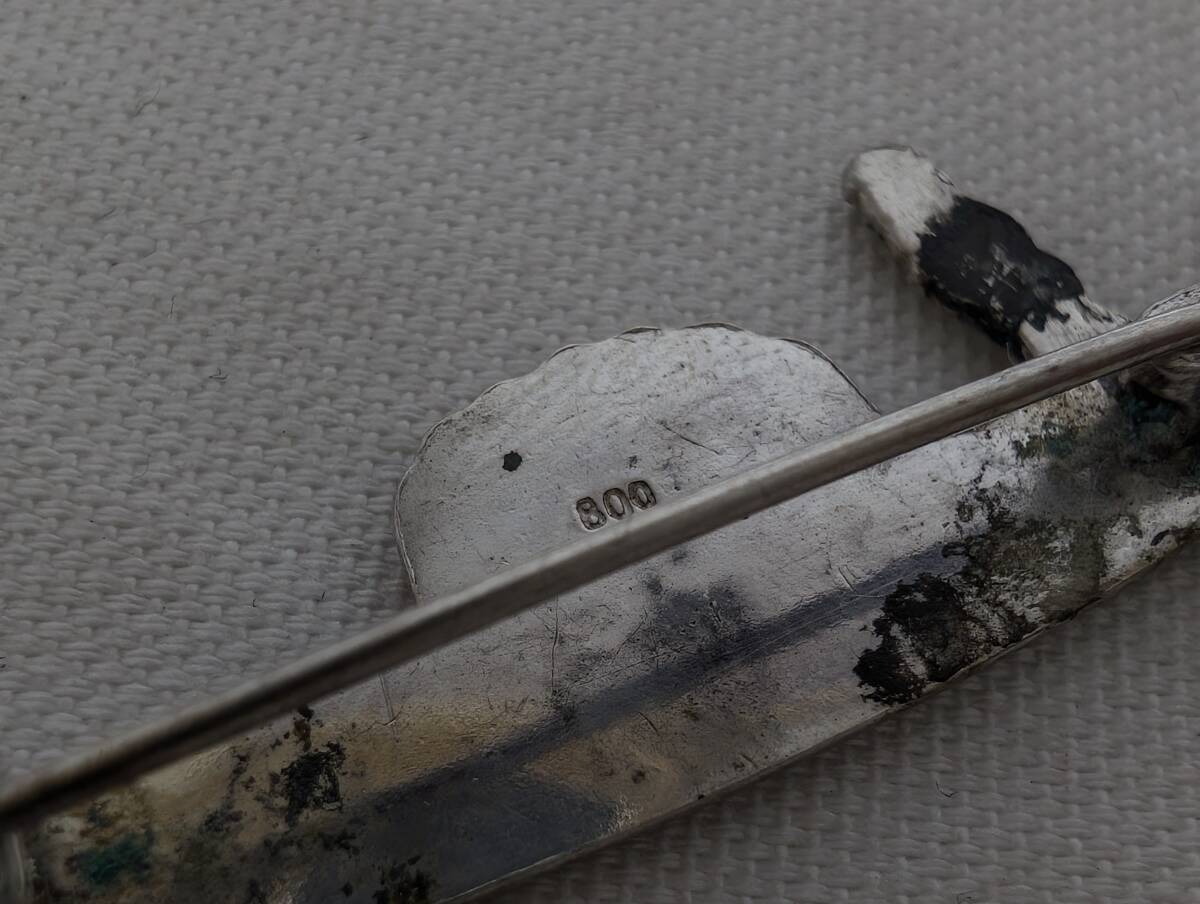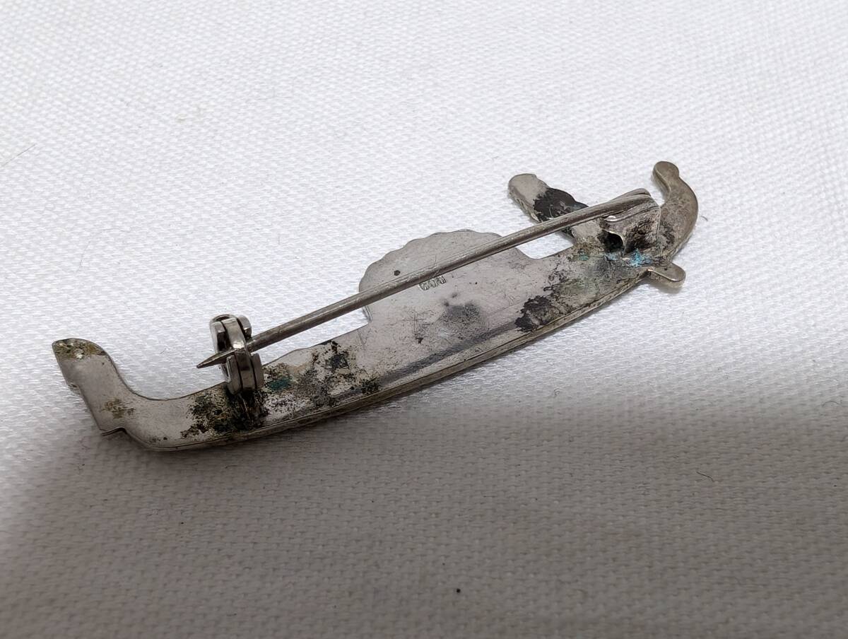 ご覧くださいましてありがとうございます。ロンドンのアンティークマーケットで購入したシルバー800のブローチです。個性的で素敵なブローチです。コンディションの方は、マーカサイトが1箇所とれているのと、経年による若干の汚れが見られます。それ以外は、目立ったキズやダメージ等はごさいません。写真を複数掲載しておりますのでご参照ください。ノークレーム、ノーリターンでよろしくお願い致します。