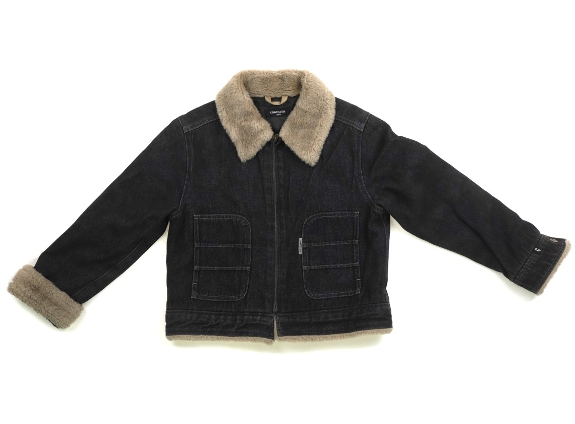 デニム素材。中綿入り。前ファスナー開き。デニム特有の色褪せが見られます。