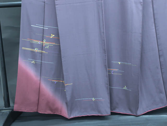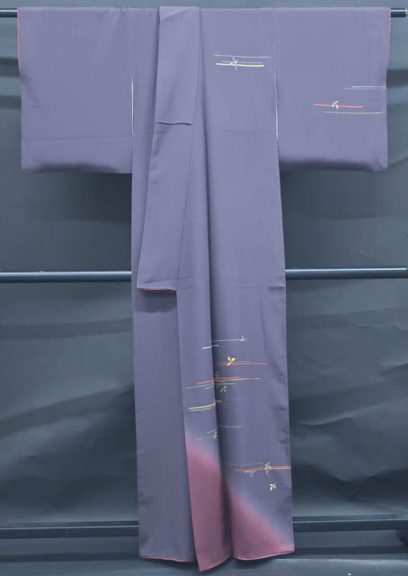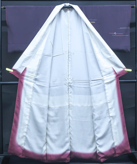 リサイクル商品のため、胸辺り・後ろ身頃・袖など所々薄汚れがございますがご使用頂けると存じます。 地色は濃紫です。 1枚目の画像が近いお色かと思われます。 素材は正絹です。 |