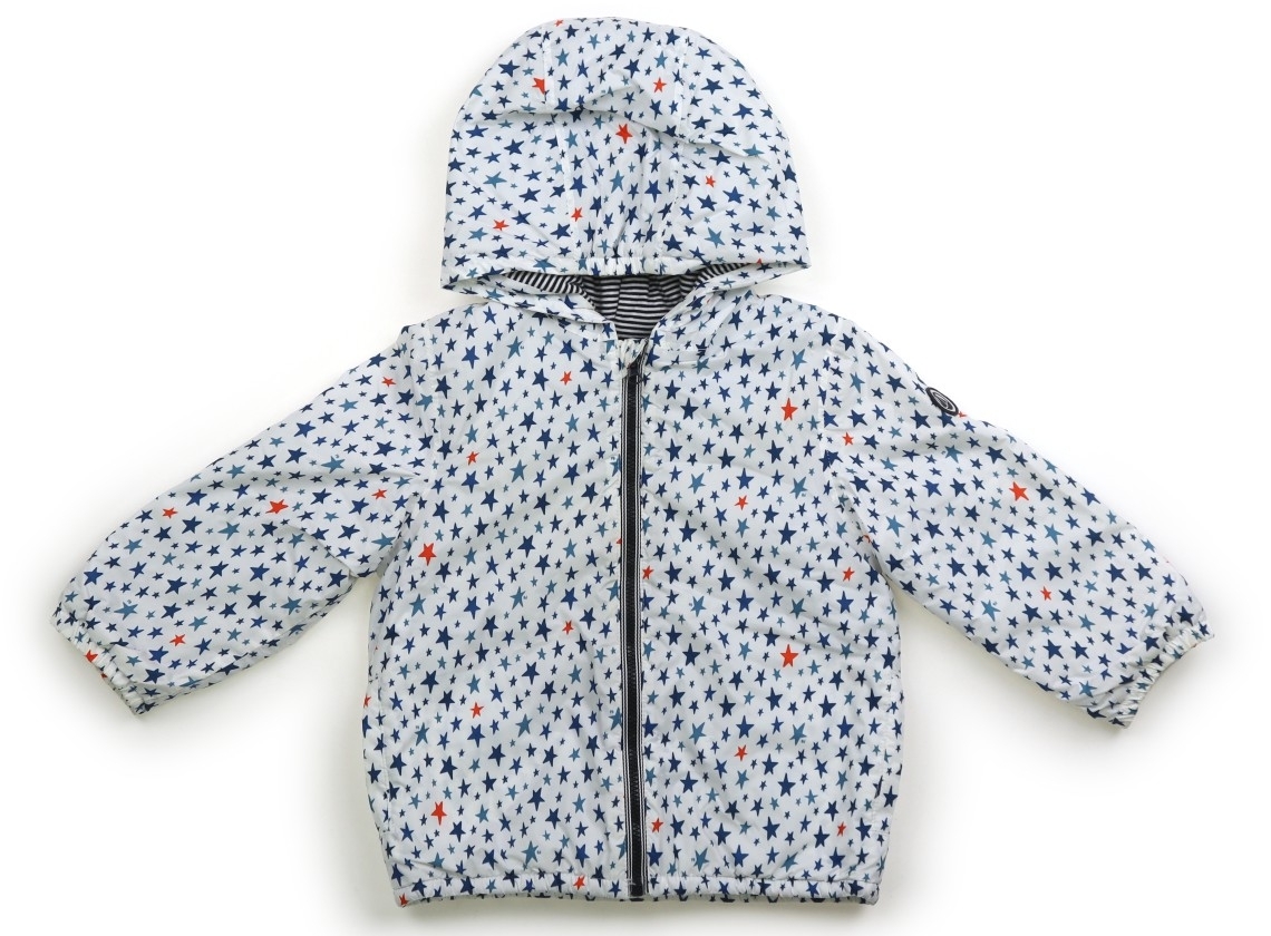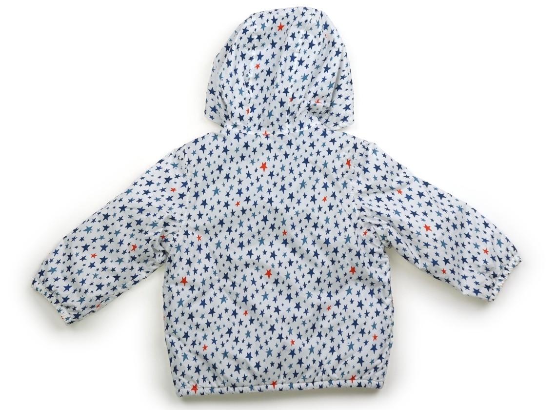 実際のサイズ表記は86cm。フードは縫い付けです。フードの裏地は、綿素材。中綿ポリエステル素材。袖口、やや薄汚れ跡あり。使用感ありますが、まだお使いいただけそうです。