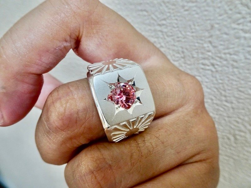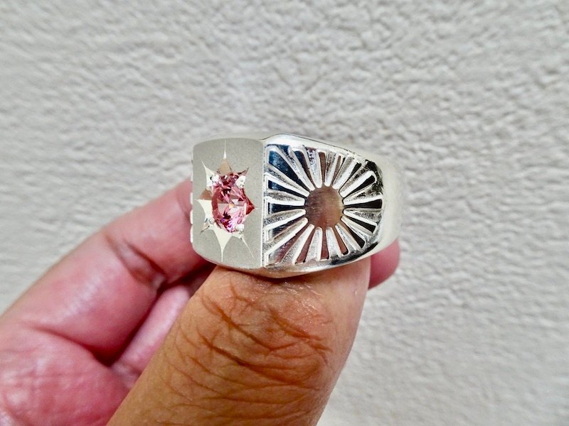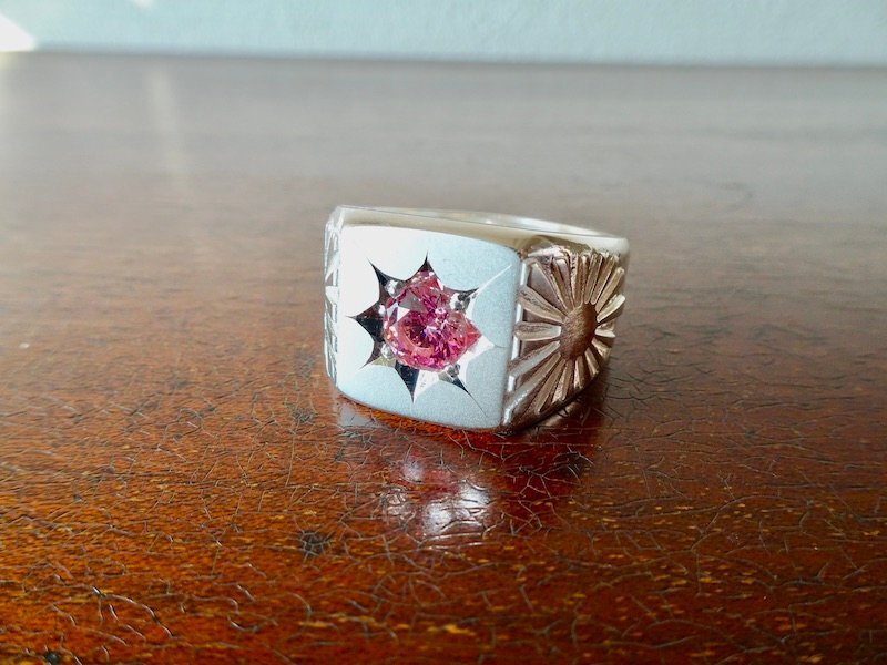 ■ ■ 商品名: 『一つ星ピンクジルコニア、太陽の印台リング』 ■ ■ |
