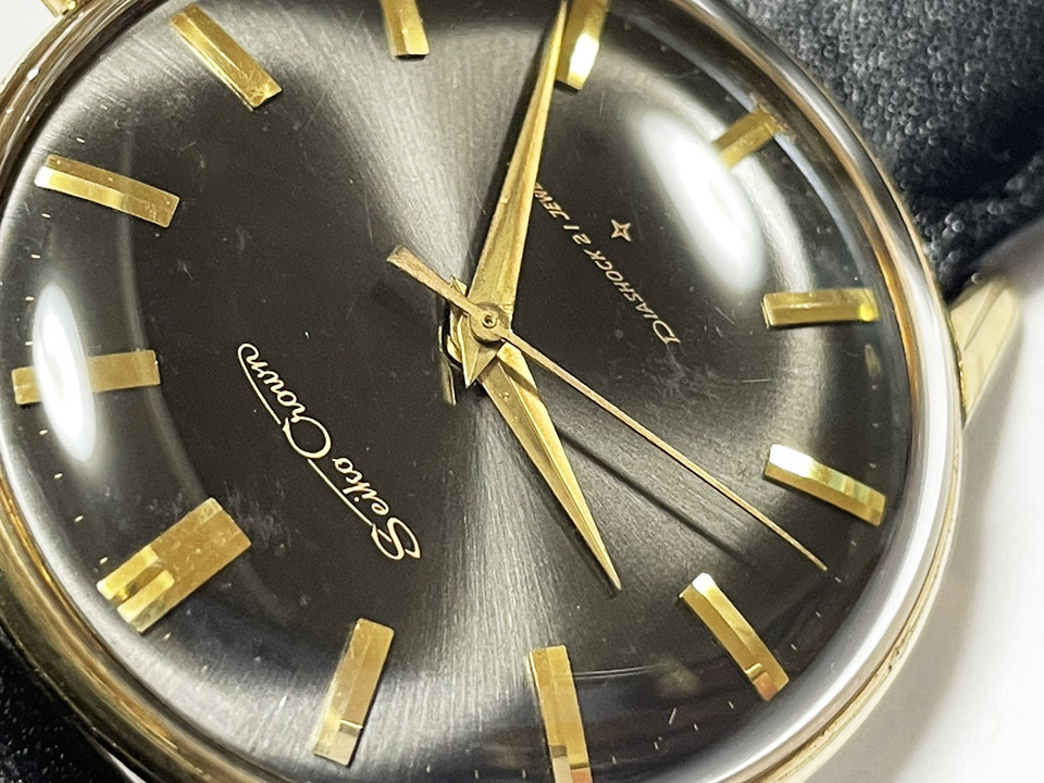 『SEIKO セイコー クラウン 21石 黒文字盤 金メッキ 手巻き 稼働 60年代 ヴィンテージ メンズ腕時計』です。