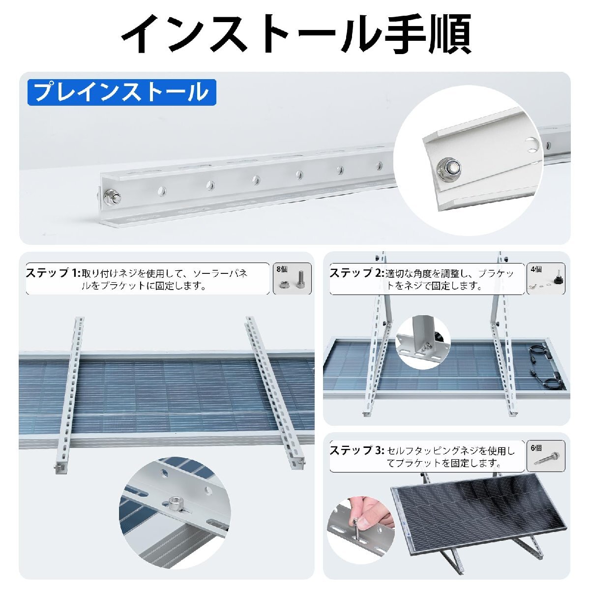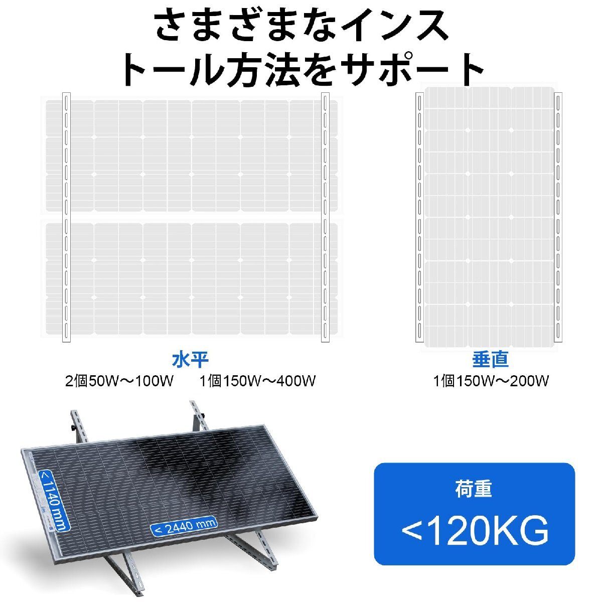 ブランド:ECO-WORTHYサイズ:45inch2枚ソーラーパネル架台[適応性の向上]-新しくアップグレードされたエコブラケットは、100Wから400Wの範囲のソーラーパネルアレイまたは約45インチの幅のパネルに対応できます。このブラケットは、すべてのECO-WORTHYソーラーパネルに適しています
