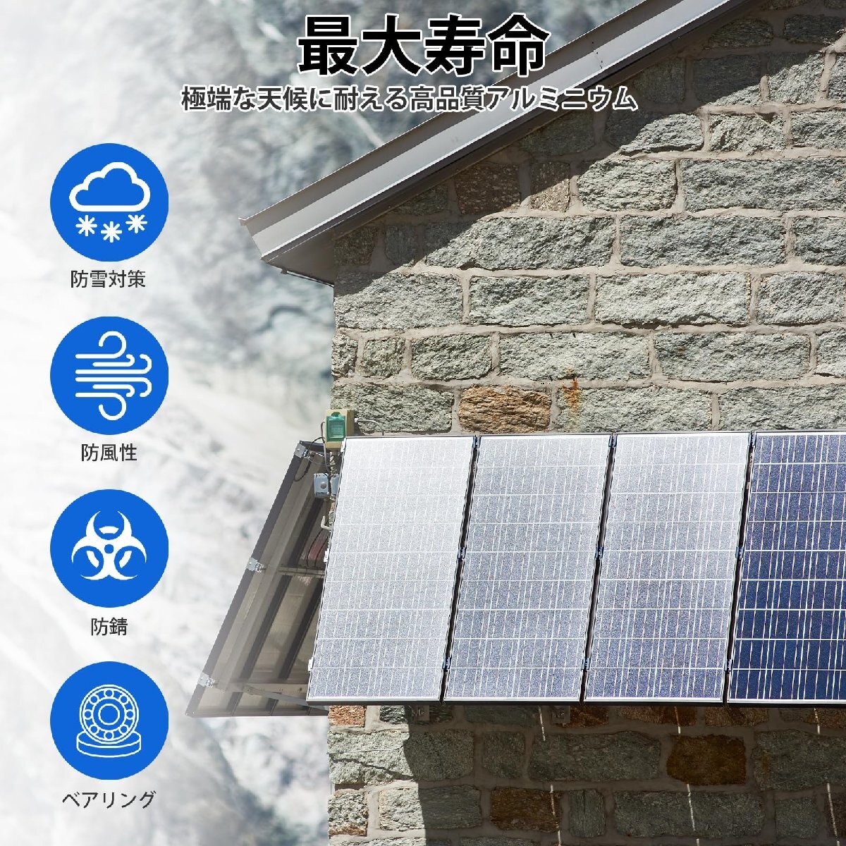 [効率の向上]-最適なエネルギー生産のためにパネルを太陽に向かって角度を付けることができる傾斜システムで、ソーラーパネルの効率を最大25%向上させます
