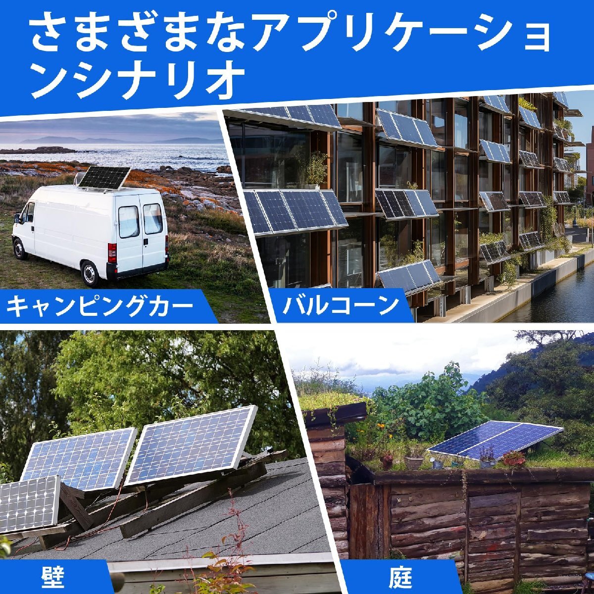 [汎用性の高いアプリケーション]-ソーラーパネルマウントキットは、RV、ボート、キャンピングカー、小屋など、幅広いオフグリッドシステムに最適です。(日陰を避けて、より多くの日光を受け取ることを避けてください)
