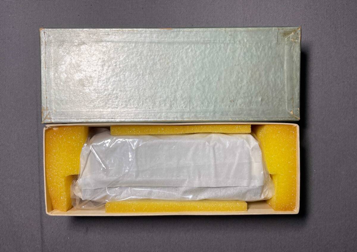 2枚目画像の状態で保管されていました。白紙で包まれナイロンで保護されています。
