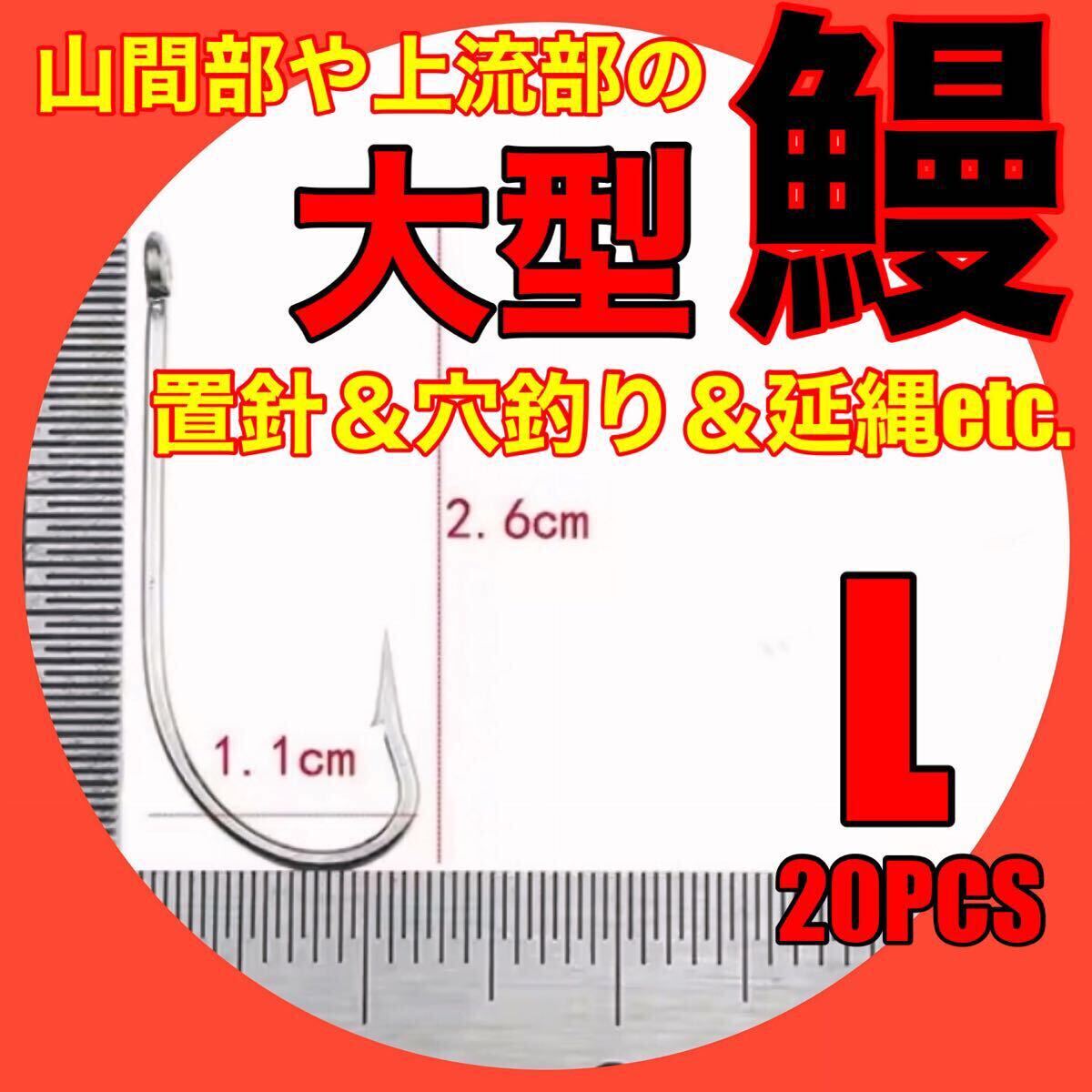 実は本商品はある人のために輸入をはじめました。彼、T氏は2023年に70代で他界しました。とにかく鰻の穴釣りの名人で、出品者は何回も同行したことがあるのですが、かならず出品者の倍以上の鰻を捕獲する人でした。視力が衰えてきて仕掛作りに苦労していたので、出品者が毎年(とは言っても晩年の2年くらいでしたが)仕掛に関して準備しました。T氏はとにかく「大きい針、大きい針」と出品者にリクエストしました。最終的にT氏のお気に入りになったのが本商品です。5LからLまでを出品者の手のひらに乗せて見せると、T氏その時の気分で「今日はコレ」とニヤリとしなが仕掛を選んで川に入って行きました。山間部や上流ではなく、実は目と鼻の先に海がある場所でもこれらの針を使っていました。小さい鰻はリリースしていたので、それをさける目的があったのだとも思われます。余談でした。