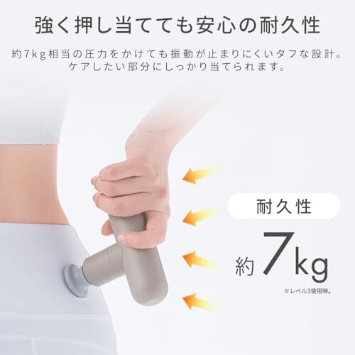 【約7mmのストローク/耐久性約7㎏】約7mmののストロークで身体にアプローチします。また強く当てても安心の耐久性で、約7㎏相当の圧力をかけても振動が止まりにくいタフな設計をしています。ケアしたい部分にしっかり当てられます。