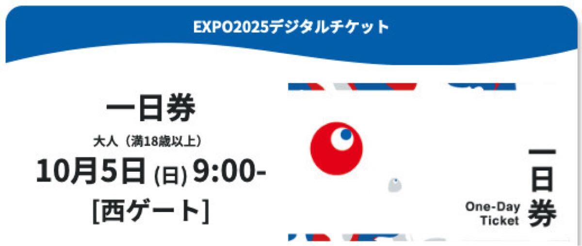 10月5日日曜日の西ゲート9時予約済み一日券1枚です。1枚余ってしまったので出します。