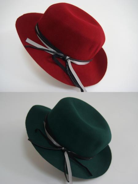 送料無料◆2色組◆百貨店仕様◆婦人帽子◆プレーンカラー◆毛100%◆ウール素材◆調節機能付き◆セミブリムハット(レッド&グリーン)