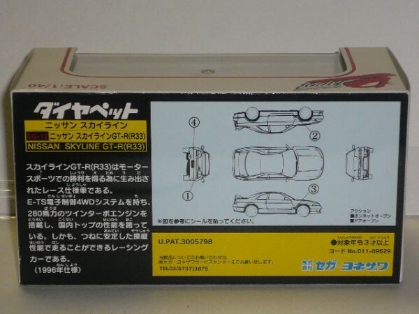 ☆1/40 Diapet ニッサン スカイライン GT-R(R33) 銀です。箱に少し傷みがありますので、ご了承の上入札下さい。商品の状況は写真でご判断の上、ノークレーム・ノーリターンでお願いします。保証はできませんが、定形外郵便での発送も可能です。