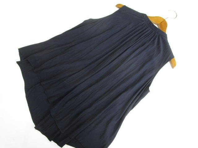 ノースリーブ スタンドカラー 洗えるカットソー 17R ネイビー 【メール便可】