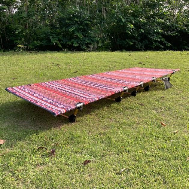 丈夫でとにかく軽いローコットです。アルミ製で2キロを切っていますが耐荷重120kgをキープ。