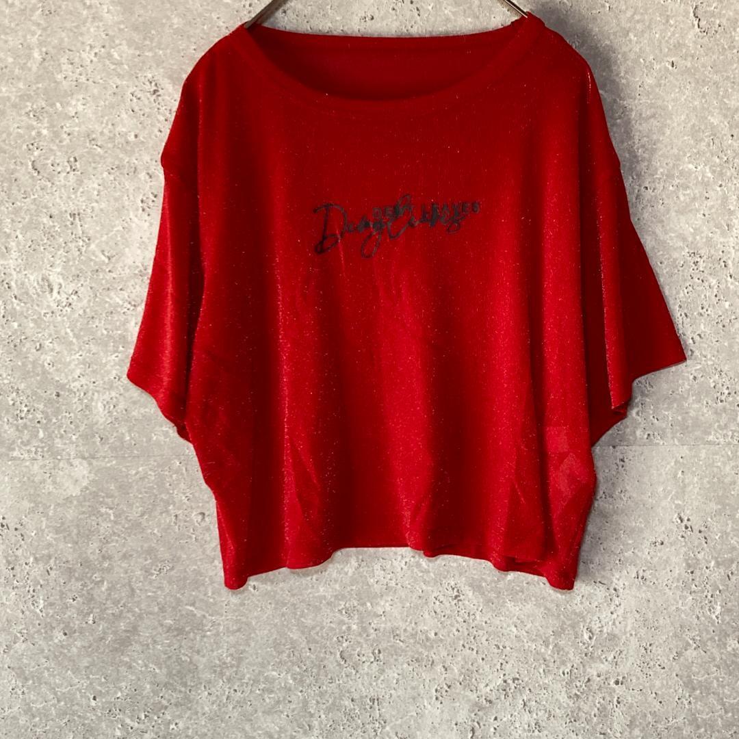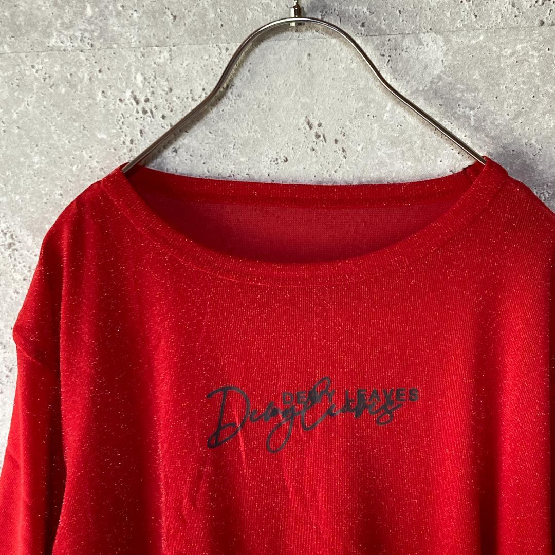 アズールバイマウジー(F)フレアスリーブロゴカットソー*伸縮性*ラウンドネック
