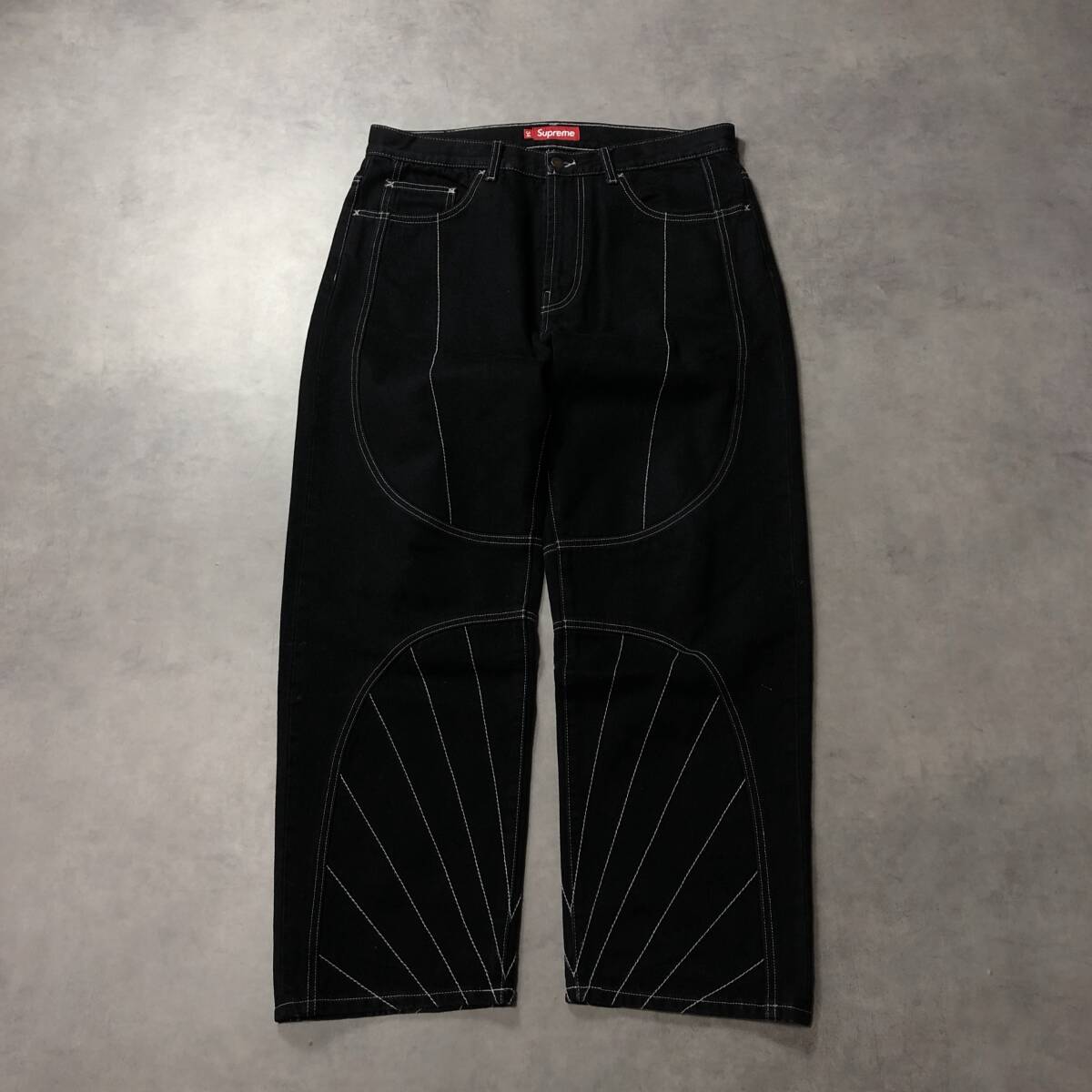 GQ3720◇Supreme:radial embroidered loose fitJean 23Fw ◇W34◇黒系 シュプリーム ルーズフィット デニム