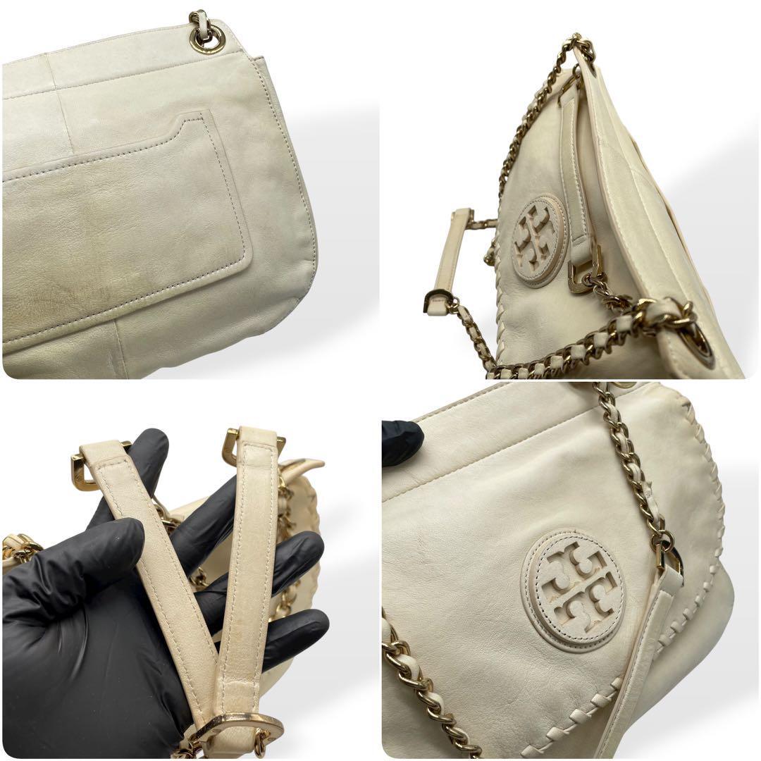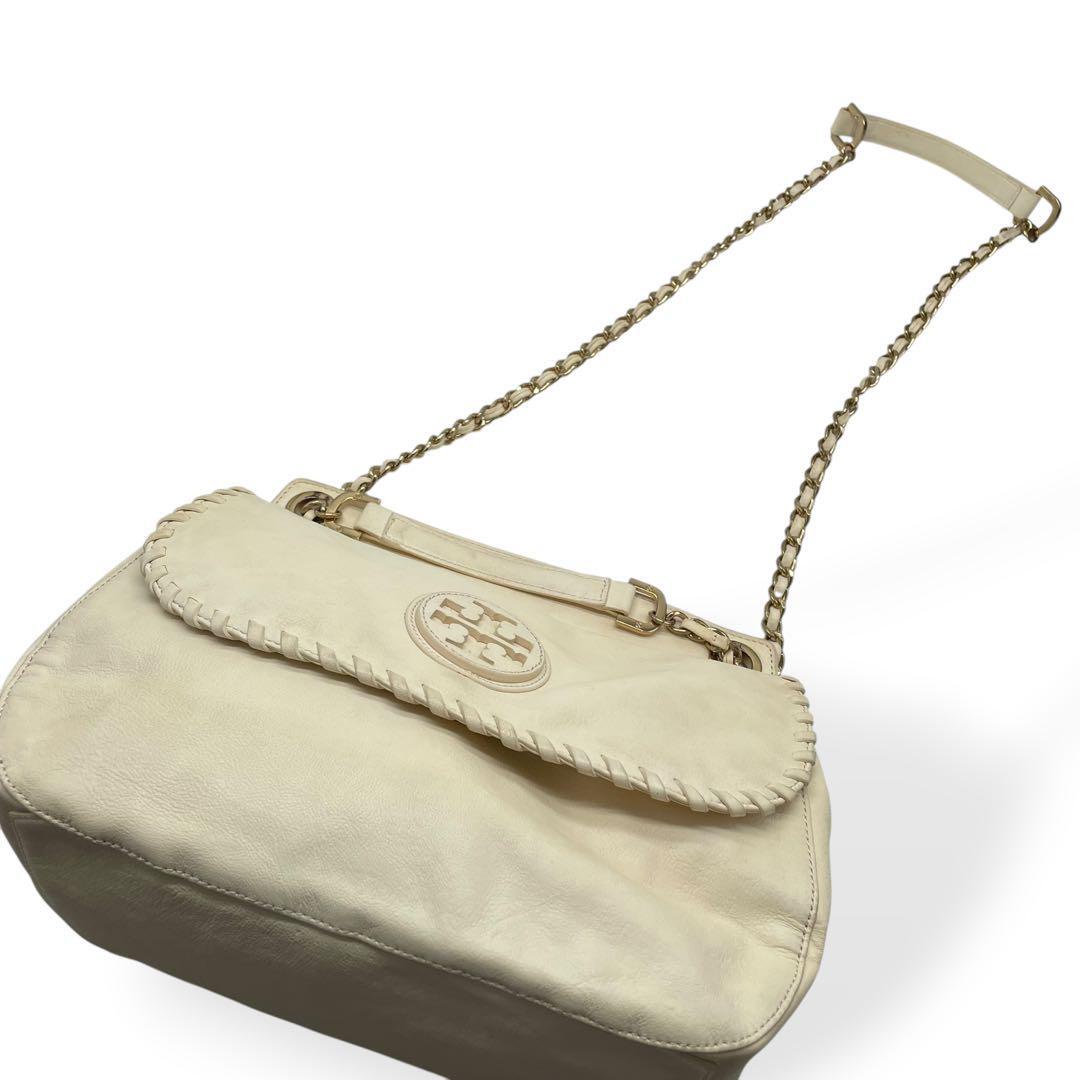 良品 Tory Burch マリオン ショルダーバッグ アイボリー チェーン トリーバーチ