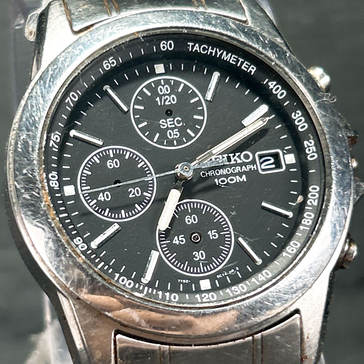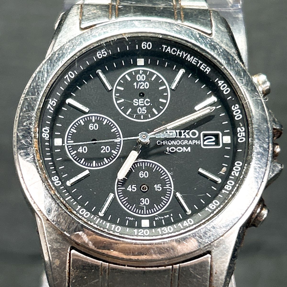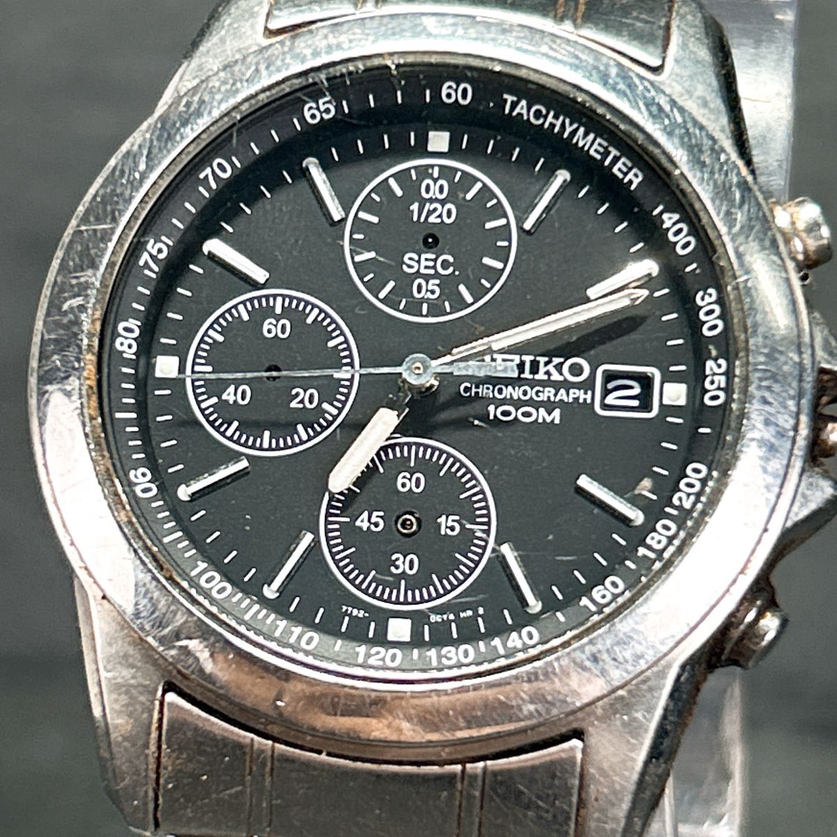 SEIKO セイコー クロノグラフ 7T92-0CW0 腕時計 クオーツ アナログ カレンダー ブラック文字盤 ステンレススチール ラウンド メンズ