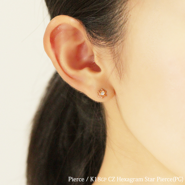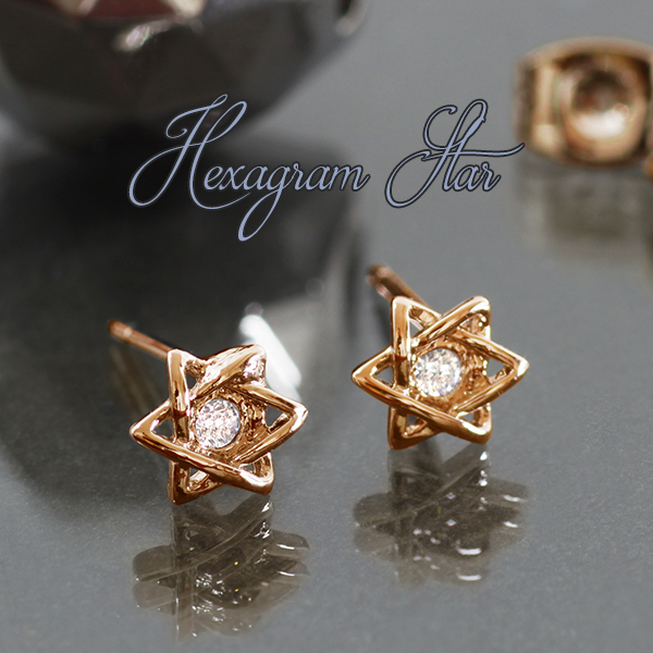 ピアス レディース スター 星 ピンクゴールド 18金 18kコーティング シンプル 小さい 小さめ/ K18GP CZダイヤ ヘキサグラムスターピアス PG