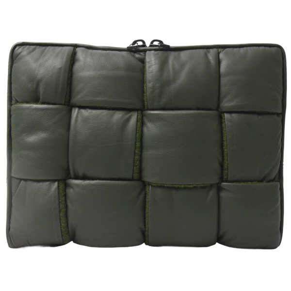 商品名 | ラムスキン イントレチャート 2つ折りクラッチバッグ ダークカーキ |