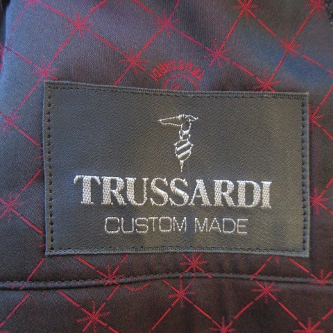 TRUSSARDI CUSTOM MADE シングルスーツ セットアップ 3ピース テーラードジャケット 背抜き ベスト スラックス ストライプ グレー
