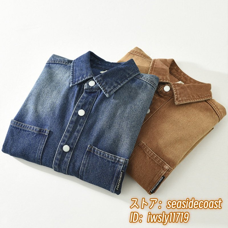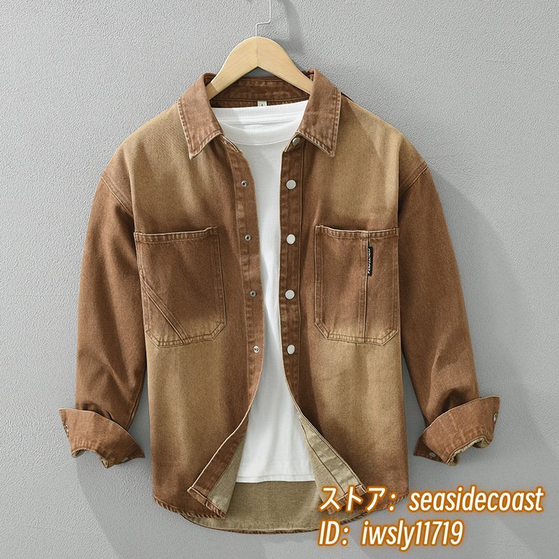 入手困難 デニムシャツ メンズ 長袖シャツ 新品 デニムジャケット 超希少 ヴィンテージ 個性 トレンド カジュアル 心地良し ブラウン L