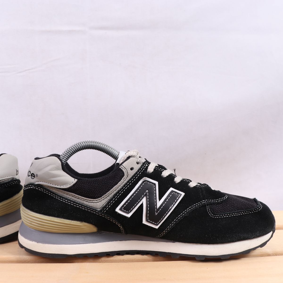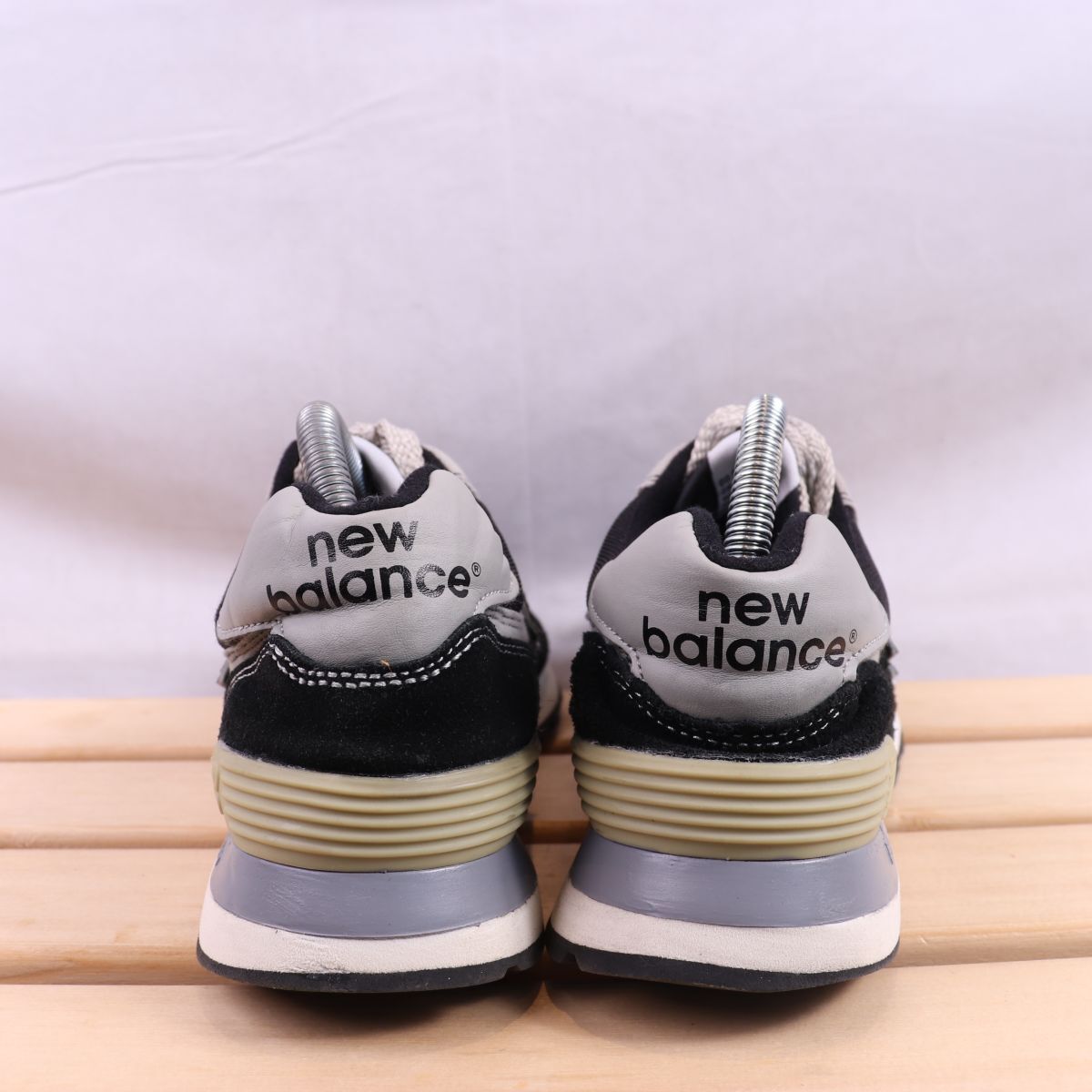z2451【574】ニューバランス US8 26.0cm/黒 ブラック 灰 グレー 白 ホワイト newbalance メンズ スニーカー 中古